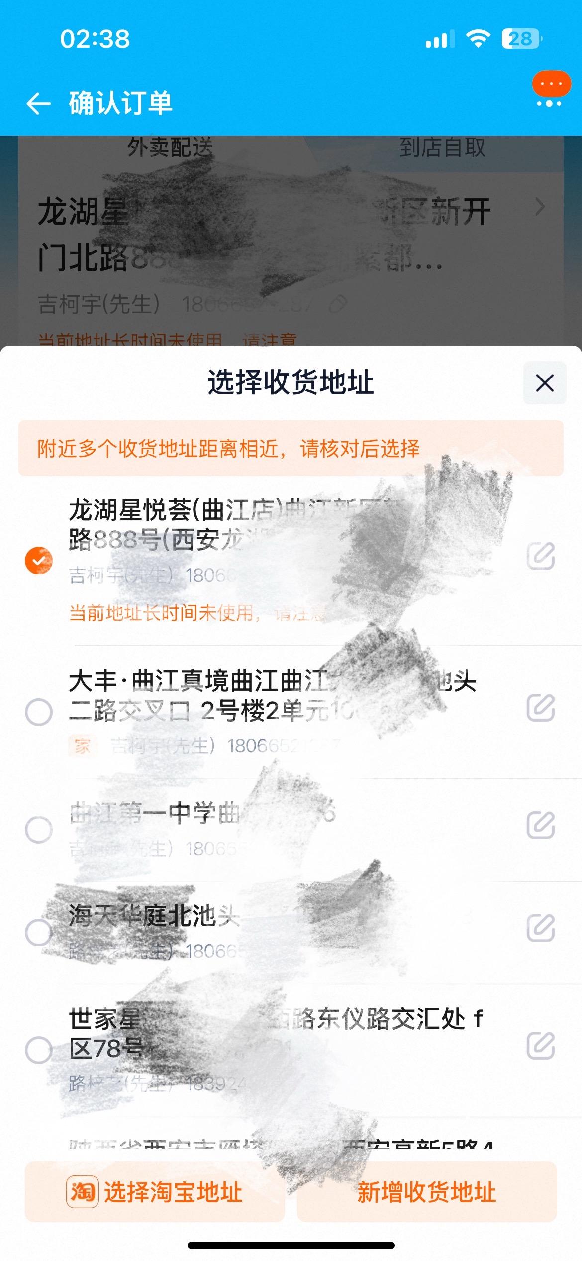 点开闪购平台出现一大堆陌生人的地址信息。