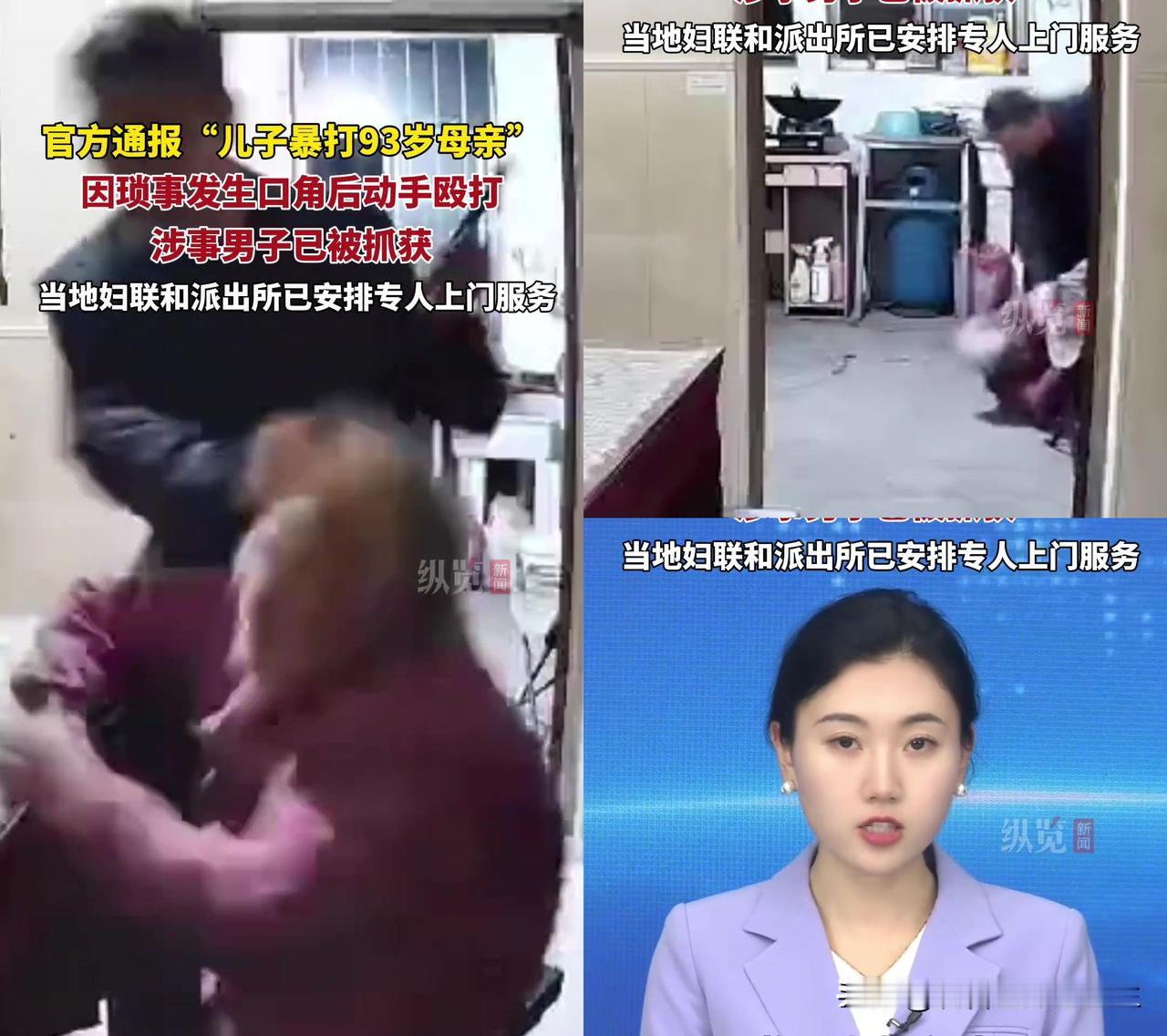 昨天刷到93岁妈妈被儿子打的视频,我握着手机的手都抖了, 老太太坐在地上,嘴角还挂着血,亲儿子指着她骂“你烦不烦”!就因为点琐事口角,居然动手打亲妈! 现在官方通报了,涉事男子被抓,妇联和派出所上门照顾老太太了。 有人说这就是十月怀胎的儿子,老了换这么个报答,也有人说年轻时得对自己好点,谁都靠不住。 我真是气坏了!93岁的妈腰都直不起来,怎么下得去手?打妈的人连猪狗都不如!必须严判! 想起我妈以前总说“老了靠你弟”,现在看了这事儿,她翻出存折说“还是得自己留钱”。 你们说,咱们拼命养孩子,老了真能靠得住吗?身边有那种掏心掏肺养孩子,老了寒心的事吗?