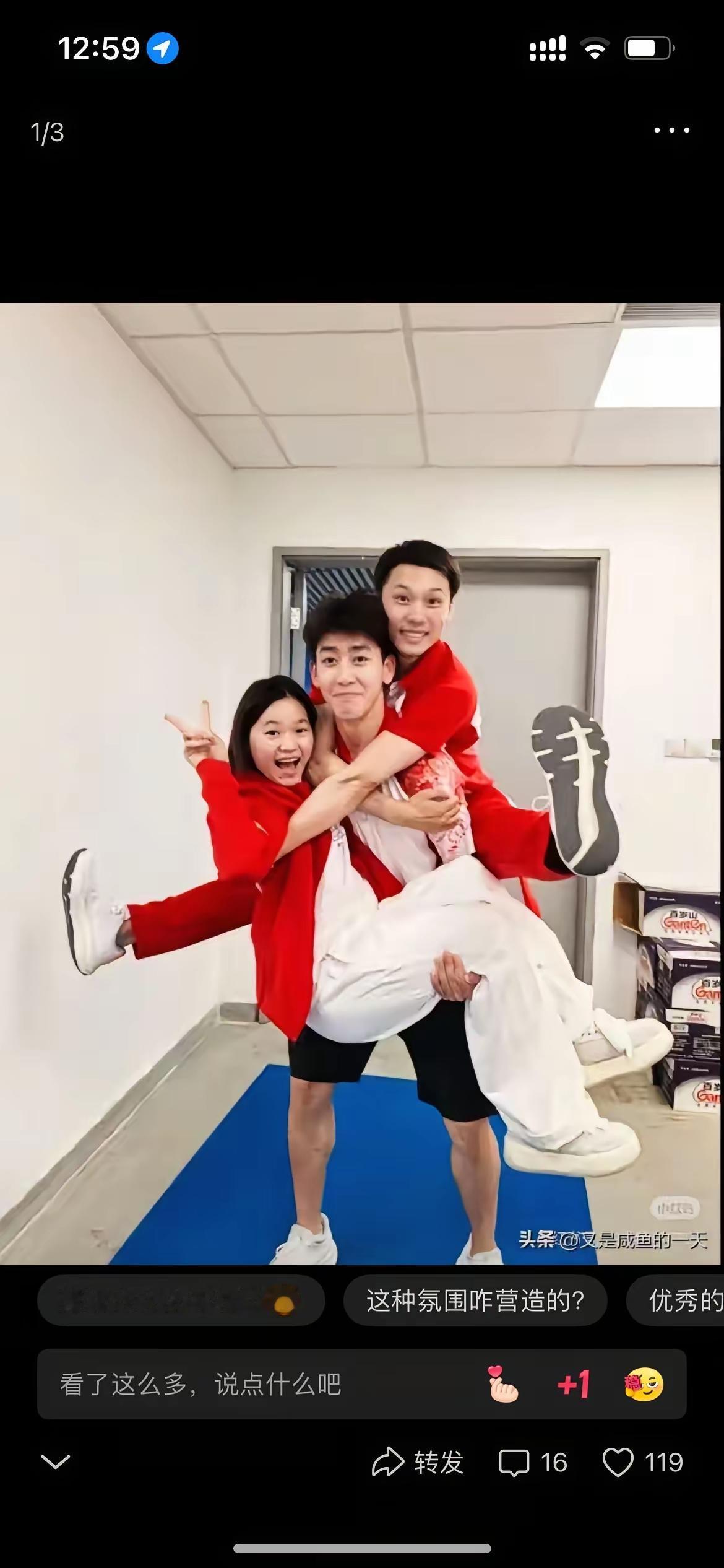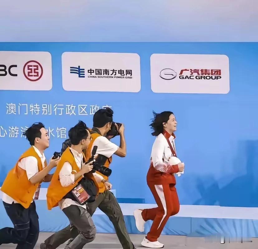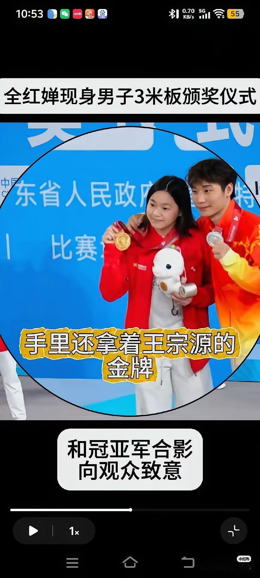 全红婵的全运会之旅: 忙着捡娃娃(跳水迷送的公仔) 抱娃娃(谢思埸和谢嫂可以歇歇啦) “老父亲”何威仪跟在后面收娃娃 和张家齐贴贴 和陈艺文贴贴 和各路小伙伴合照 和小伙伴们一起玩耍:跳舞踢毽子搞怪…… 婵宝虽然变大只了,可是内心还是那个小可爱,把自己缩小藏在陈艺文怀里…撒娇[呲牙]