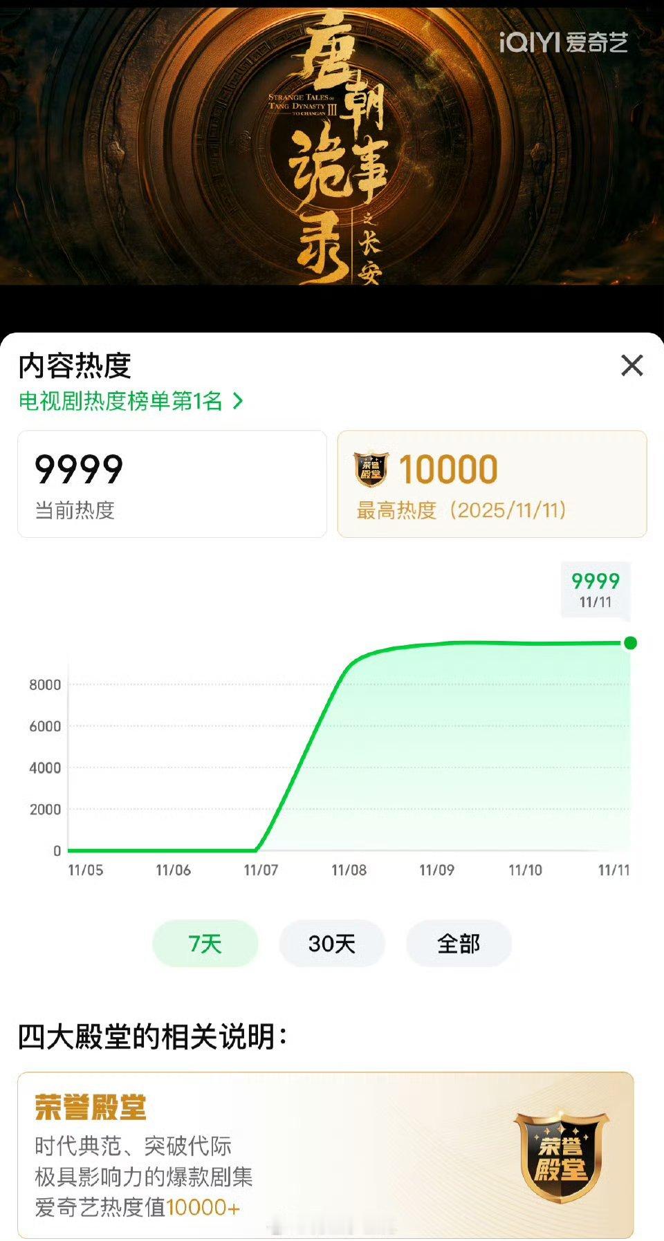 《唐朝诡事录之长安》爱奇艺热度破10000,继《漂白》《临江仙》《朝雪录》《生万物》后爱奇艺2025年第五部破万剧集