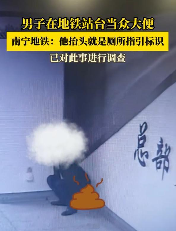 太恶心了,一男子在地铁站当众大便,南宁地铁回应:所在位置抬头就是厕所指引标识(图二),事后保洁及时到场清理。建议拘留5天,上海以前有相似判罚!