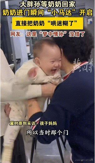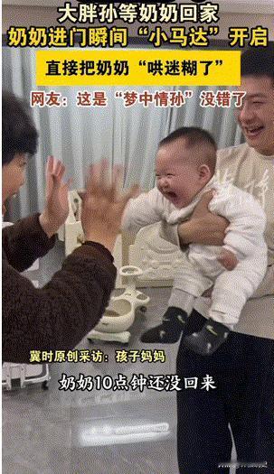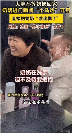 “这谁顶得住!”10月11日,安徽宿州一位奶奶外出办事,晚上回家时已经是10点多,担心吵到家人,开门时都是小心翼翼的,可进屋后却发现大胖孙子就等在门口,见到奶奶的一瞬间直接变成“小马达”,开心的不行,直接把奶奶都给哄迷糊了。网友:这下奶奶的不动产都动了一下。[困] 安徽宿州的一位奶奶外出办事,指针悄悄滑过晚上10点,街巷早已褪去白日的喧嚣,奶奶刚忙完手上的事,脚步匆匆往家赶,心里惦记着家人或许已经休息。 担心吵到家人,她特意放轻了动作,开门时都是小心翼翼的,钥匙插进锁孔时缓缓转动,推门的瞬间更是小心翼翼,生怕开门的声响惊扰了沉睡的家人。 让她没想到的是,屋里并没有想象中的静谧,刚推开一条门缝,就看到客厅内儿子正抱着大胖孙子站在那里。 这个九个月大的宝宝,平时作息规律,晚上八点不到就会进入梦乡,今天却异常精神,小脑袋一直朝着门口的方向,眼睛亮晶晶地盯着,像是在期盼着什么。 原来,从傍晚开始,宝宝就有些坐立不安,到了该睡觉的时间,不管爸爸怎么哄,都不肯闭眼。把他放到床上,他就哭闹着爬起来,抱到沙发上,他就支着小身子往门口望,小嘴里还时不时发出细碎的声响。 爸爸起初满心纳闷,不知道孩子到底在惦记什么,直到听到门口传来钥匙转动的声音,才恍然大悟——宝宝这是在等奶奶回家。 门彻底打开的那一刻,宝宝的眼睛瞬间亮了起来,原本还安静的小家伙,见到奶奶的一瞬间一下子变成了充满活力的“小马达”, 开心的不行。 他咧着嘴笑得合不拢嘴,眼睛弯成了两道小月牙,两只小胖脚在爸爸怀里使劲蹬着,小手还不停地挥舞着,一个劲地朝着奶奶的方向扑。 奶奶刚想先去洗手,宝宝就急得抓住她的衣角,不让她走开,那股子急切又欢喜的模样,直接把奶奶给哄迷糊了, 奶奶看着孙子这般热情,心里的疲惫瞬间烟消云散,脸上的笑容就没停过。 她知道宝宝平时都是自己带着,朝夕相处下来,孩子早就对自己产生了深深的依赖,她没有立刻抱起宝宝,而是先认真洗了手,又顺手脱掉了外衣,才小心翼翼地把孙子搂进怀里。 被奶奶抱住的那一刻,宝宝笑得更开心了,小脑袋在奶奶怀里蹭来蹭去,满足得不行, 一旁的爸妈看着这一幕,心里满是感触, 他们亲眼见证着孩子对奶奶的惦记,这种不加掩饰的喜爱,纯粹又动人。 这温馨的一幕很快引起了网友们的热议, 也温暖了广大网友! “一份家庭温馨的画面,是对隔辈亲的最好诠释!” “奶奶深爱孙子,孙子喜欢奶奶,隔辈之亲感人至深。” “湖边静赏落日的休闲者!” “这孩子真可爱,看来真喜欢奶奶。” “奶奶真爱,孩子真亲!” “可爱的宝宝!” “这下奶奶的不动产都动了一下!” “这孩子简直是“梦中情孙”,就算把奶奶的退休工资都“骗”走,奶奶也会乐开花。” “还有人点赞奶奶的细心,讲究卫生的习惯既保护了宝宝,也体现了对孩子的重视,更有人感叹,这样的隔辈亲实在让人舒心,是实打实的天伦之乐。” “其实,孩子的世界很简单,谁真心对他好,他就会满心依赖谁。” “奶奶日复一日的陪伴与照顾,都被宝宝记在心里,化作了深夜里不肯入睡的守候,化作了见面时毫无保留的欢喜。” 而对奶奶来说,这份来自孙辈的依赖,也是一种莫大的幸福。 大家对此事有何看法,欢迎在评论区留言和讨论! (信息来源 :中国青年报 )