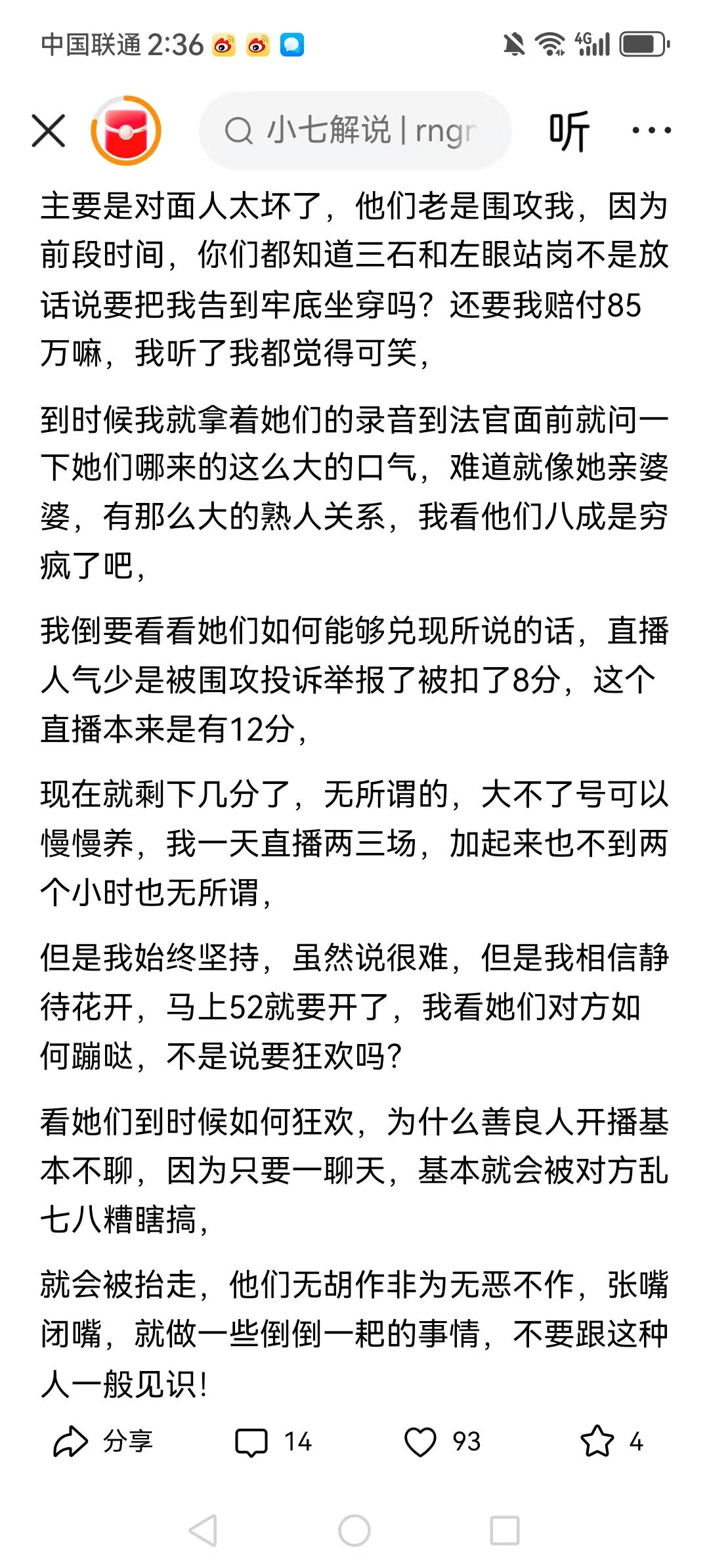 对方太坏了,小七今日直播不到5分钟又被抬走了。这个女人和28有什么关系,前期说是许的好友结果贪了许的捐款,还没还呀? 吹拉弹唱,炒作牟利,猛割老干妈韭菜。 贪财七给许敏挖坑太缺德,人品和三里街半斤八两,贪财妻给老许挖坑骗捐款。