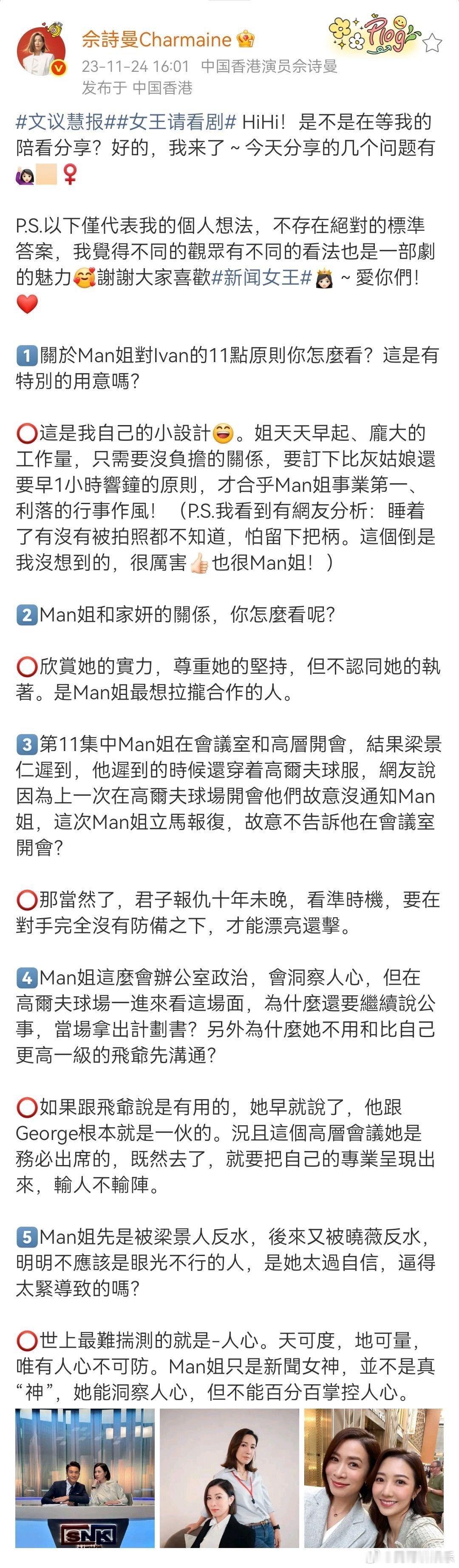 文慧心仿佛在她身上重生!那种骨子里的气场,全靠她对角色的细致打磨。看她演戏,既能感受到尊重,又能收获满满的观剧幸福。