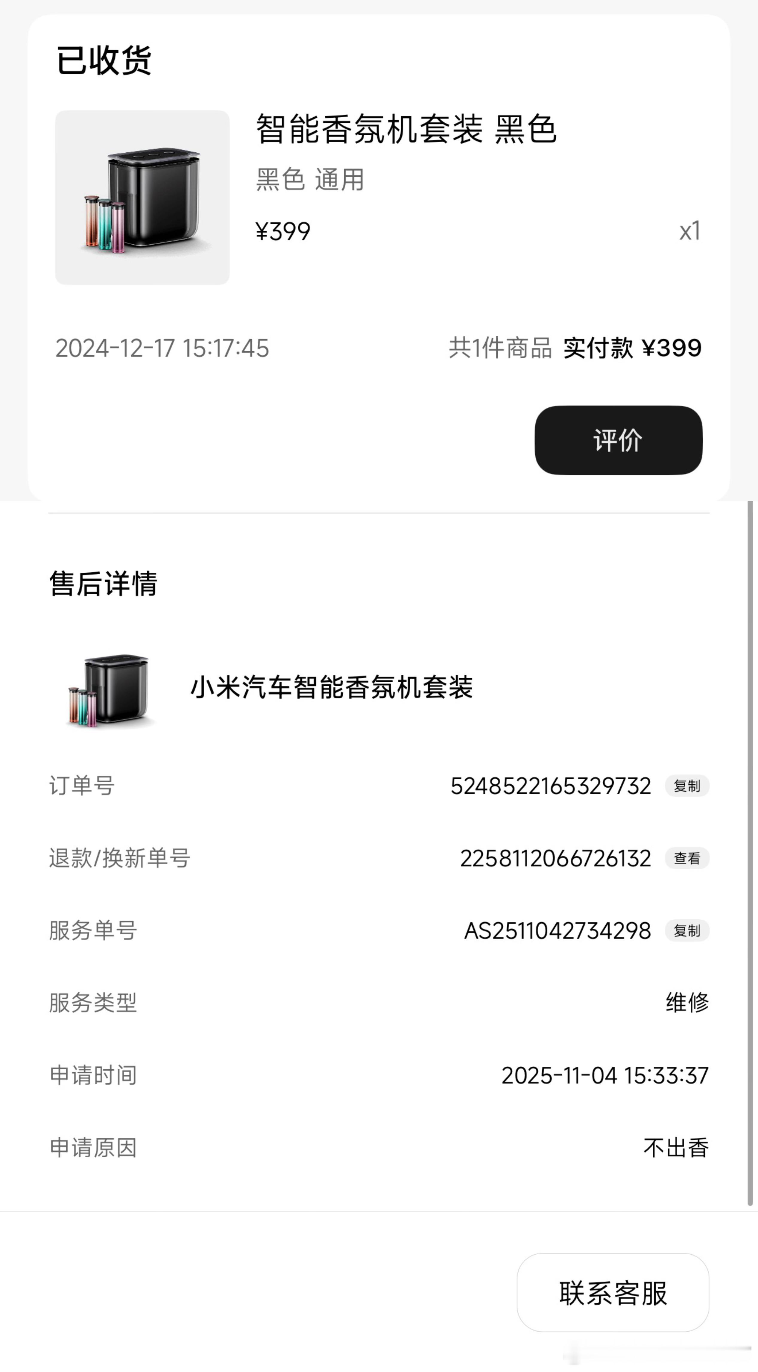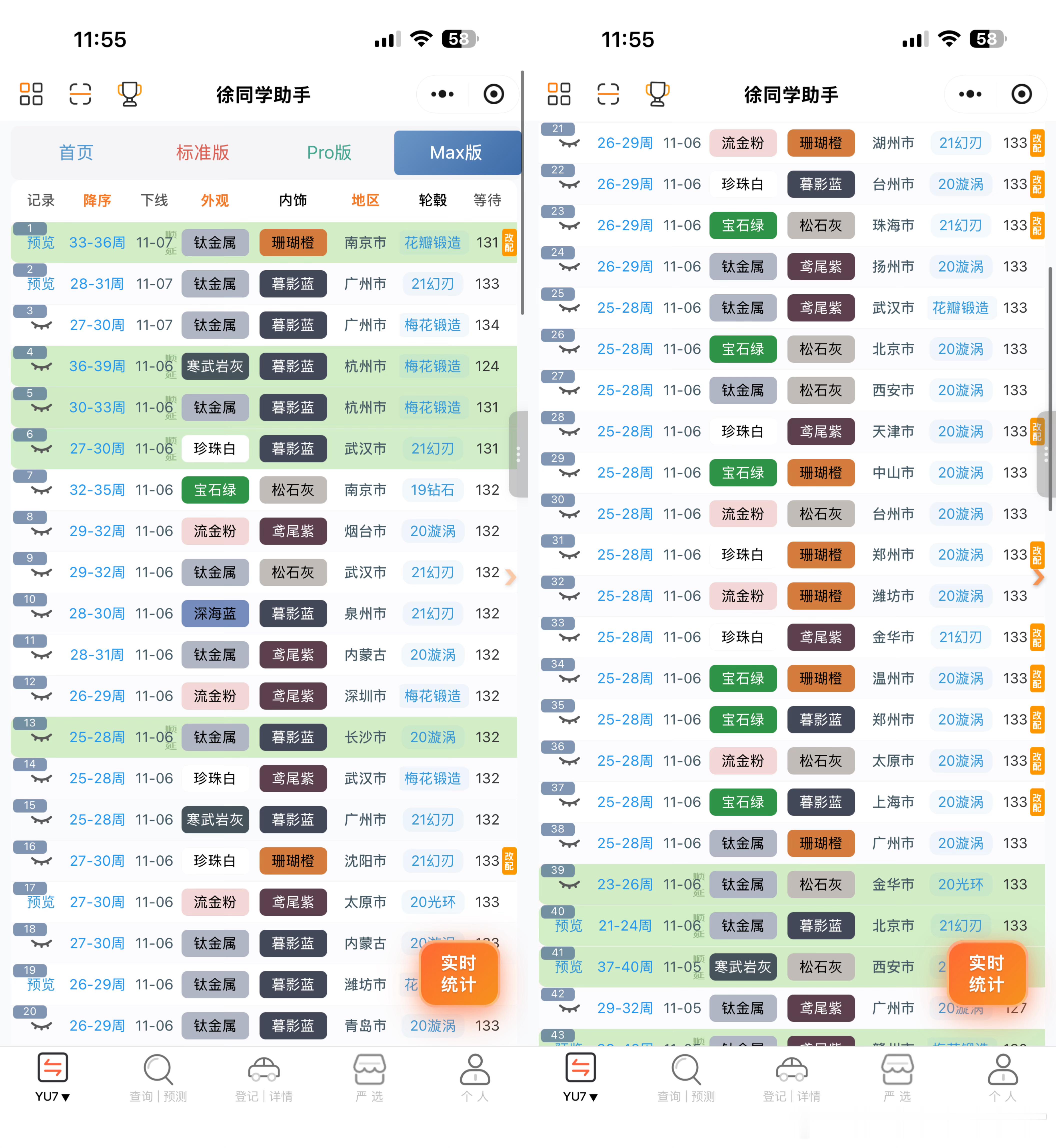 小米汽车(11月7日)下线实况观察下来YU7Max发布会当晚10分钟的订单基本全部交完了‼️有消息称:11月30日24时前下单的SU7订单今年基本都能交付完成原因有二,一是产能提升,二是积压订单减少💯小米汽车服务好大家都知道,没想到小小配件也是满分服务(我用了快一年的香氛机不出香了,售后二话不说寄了个新的给我,见图二)🌀YU7(据不完全统计)合计210台1️⃣标准:下线103台,大部队23周,但24-26周的也开始陆续下线了,交付进度在锁单2分钟多2️⃣Pro:下线70台,大部队23周左右,交付进度在2分30秒左右,影青色来了一批3️⃣Max:下线37台,大部队25-27周,但30周左右的也随时有机会下线,随机性较强🌀SU7(据不完全统计)合计95台1️⃣标准:下线43台,基本在按顺序下线,5-6-7月的随时都有机会下线,超前下线的以稀有配置为主2️⃣Pro:下线31台,5-6-7月的随时下线,满配下线都还很挺快的3️⃣Max:下线21台,很少见到21寸轮毂的了,这个配置速度最快,任何时间锁单的都可以下线4️⃣ultra:二级市场还没看到定制款流出更多关于小米汽车的最新资讯和深度解析请参考【米车派】~汽场全开