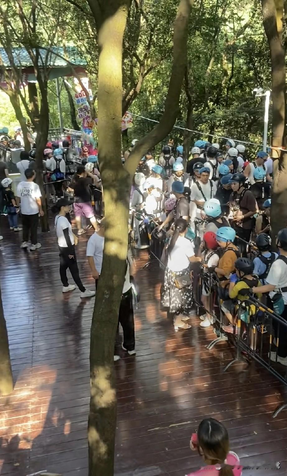 佛山秋假把这景区挤爆了!全是人,游客直接喊劝退 谁能想到佛山这丛林探险乐园,被秋假的人潮堵得水泄不通——木栈道上全是戴蓝头盔的游客,挤得连转身都难,地上还飘着宣传页。 有人说“本来明天要去,这密度直接劝退”,有人吐槽“秋假是放了,但景区是‘超负荷营业’”,还有人酸“学生放假嗨翻天,我们上班看这人挤人都头大”。 以前说“秋假是给孩子放松的”,现在成了“景区大型扎堆现场”。这到底是秋假太香,还是景区没做好承载准备? 要是你家娃吵着去这景区,你是带他去挤人潮,还是在家躺平?