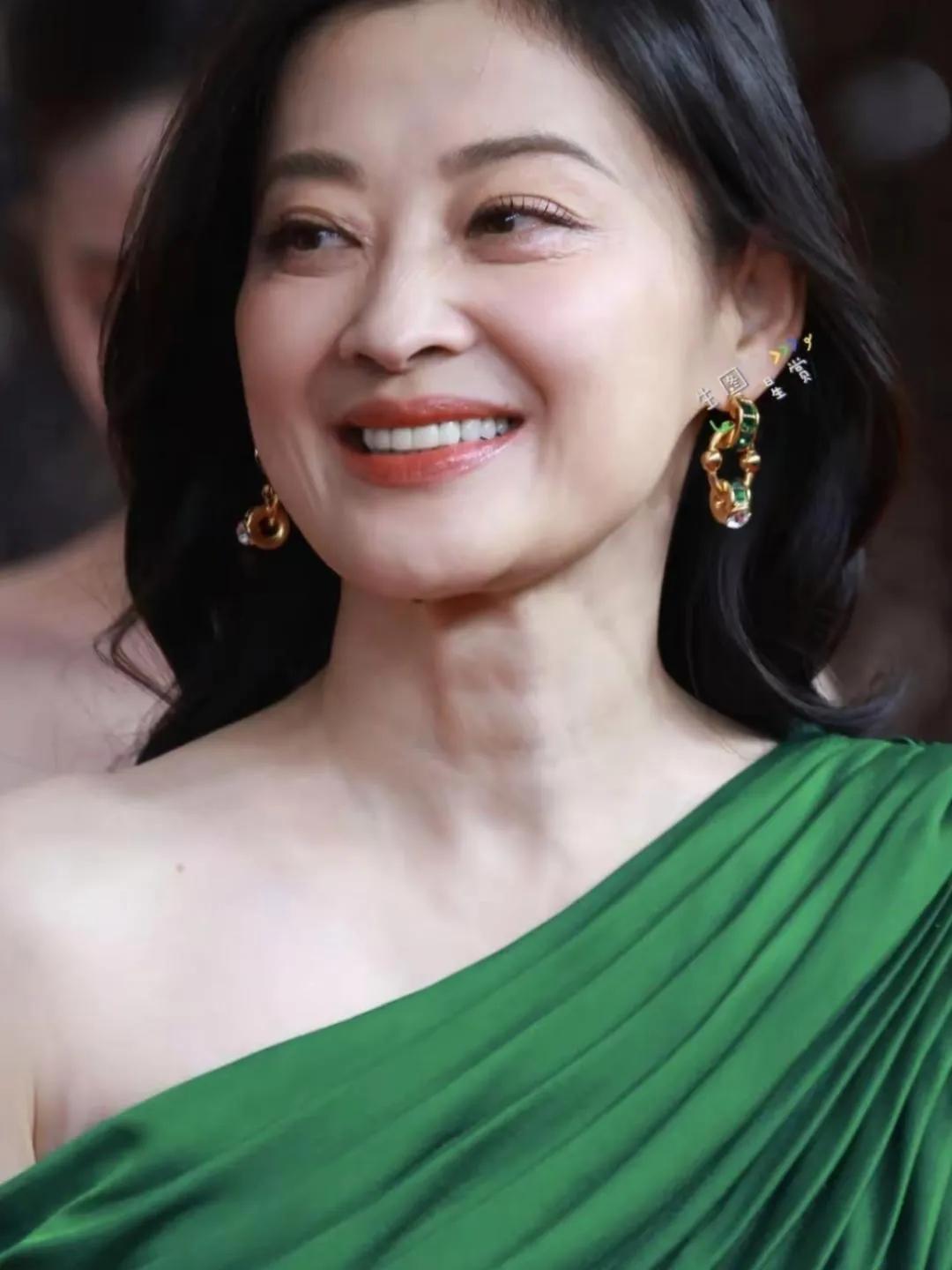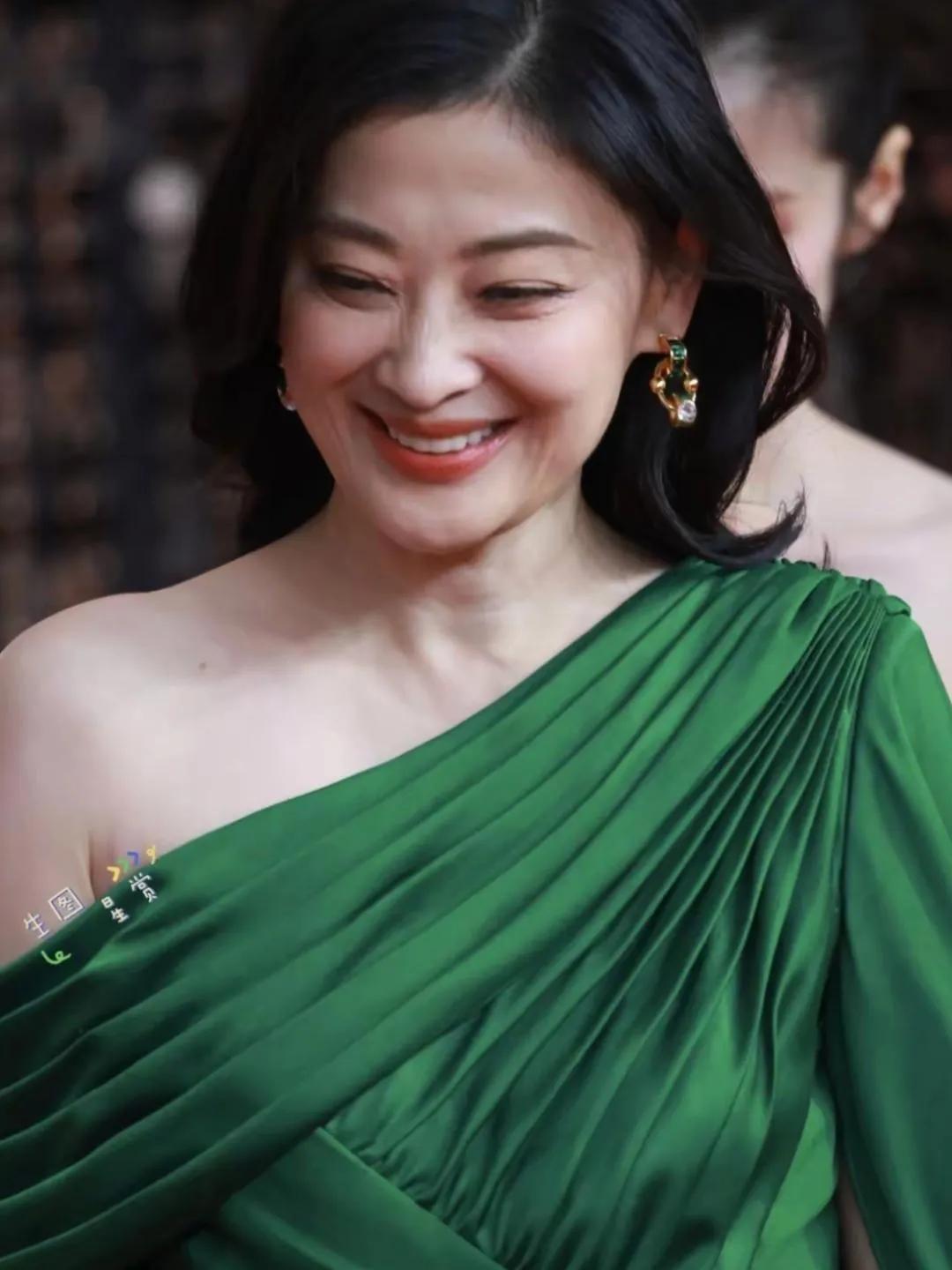 梅婷绿色斜肩礼服亮相,明艳优雅状态绝,这气质太赞了!