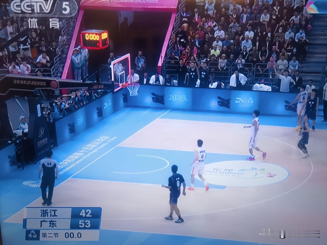 杜峰吃T!话音刚落,广东队上半场53:42领先了浙江队11分!这场比赛可以说是两队打的,并没有多大的压力,球队打的都非常放松! 上半场在广东队一次进攻中球进,但是浙江队有犯规嫌疑,而裁判却没有吹罚!这是场边的杜峰又翻了CBA的老毛病,向裁判大声争论着,他争议说,这个球应该是2+1,球进还要加罚。但是裁判并没理会啊,并且裁判直接吹了T!