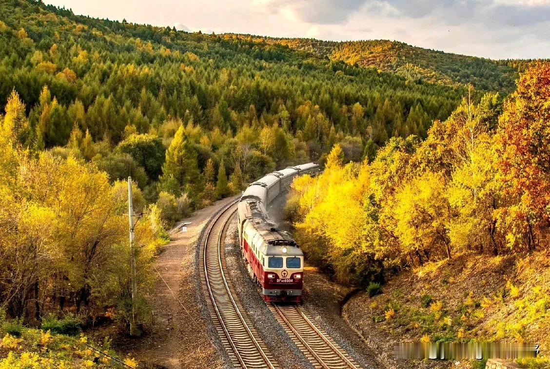 在我国东北的一些山林地区,铁路没有实现电气化,依然依赖内燃机车牵引。在深秋的时分,周围的世界都被染成了金黄色,火车行驶其中就像进入了一片金黄的童话世界。在这些铁路迷的拍车追逐之下,也就有了这一幅幅精彩绝伦的火车照片。