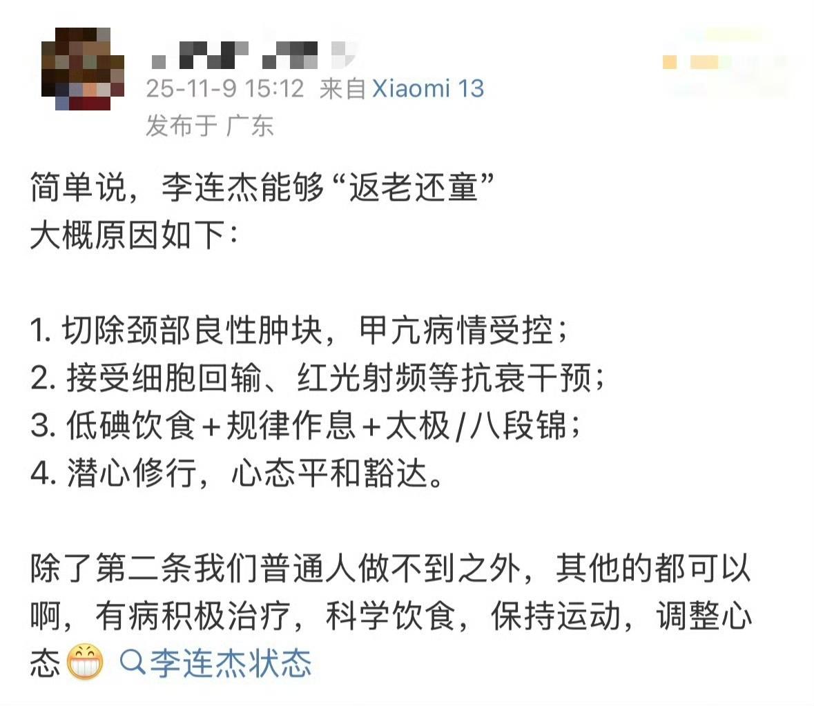 刷到李连杰“返老还童”的热搜,差点跟着跟风夸!结果刷到三甲教授的科普才懂——哪儿是什么神奇教程,就是甲亢手术成功康复了呀~ 他之前状态差,本就是疾病拖累,现在不过是回归60多岁老人该有的健康模样。那些“逆龄秘籍”“神奇偏方”全是噱头,生病要靠医生,康复要遵科学,别被谣言带偏啦~ 谣言止于智者,相信专业人士的话,才不会交智商税呀!