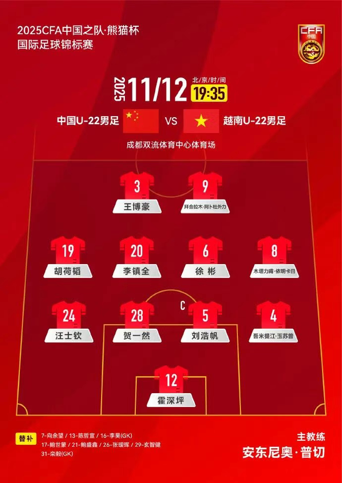 【】2025CFA中国之队·熊猫杯国际足球锦标赛第一轮,中国U22男足和越南U22的比赛于11月12日晚7点35分,在成都双流体育中心体育场打响。中国U22 0比1不敌越南U22,无缘熊猫杯开门红。全场比赛,中国U22在各项数据上都占优,但始终未能将这些优势转化为胜利。下一轮比赛将在11月15日打响,对手是韩国U22。