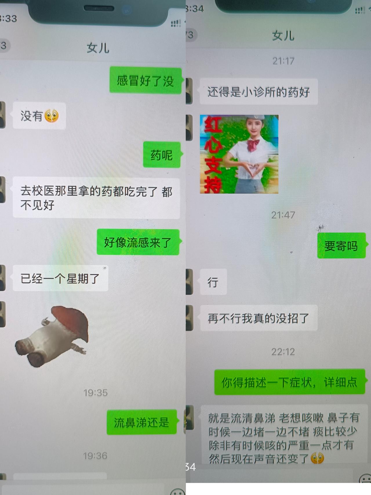 谁懂啊!女儿感冒一周多没好,200公里外寄药才是亲妈最后的倔强! 上周六在学