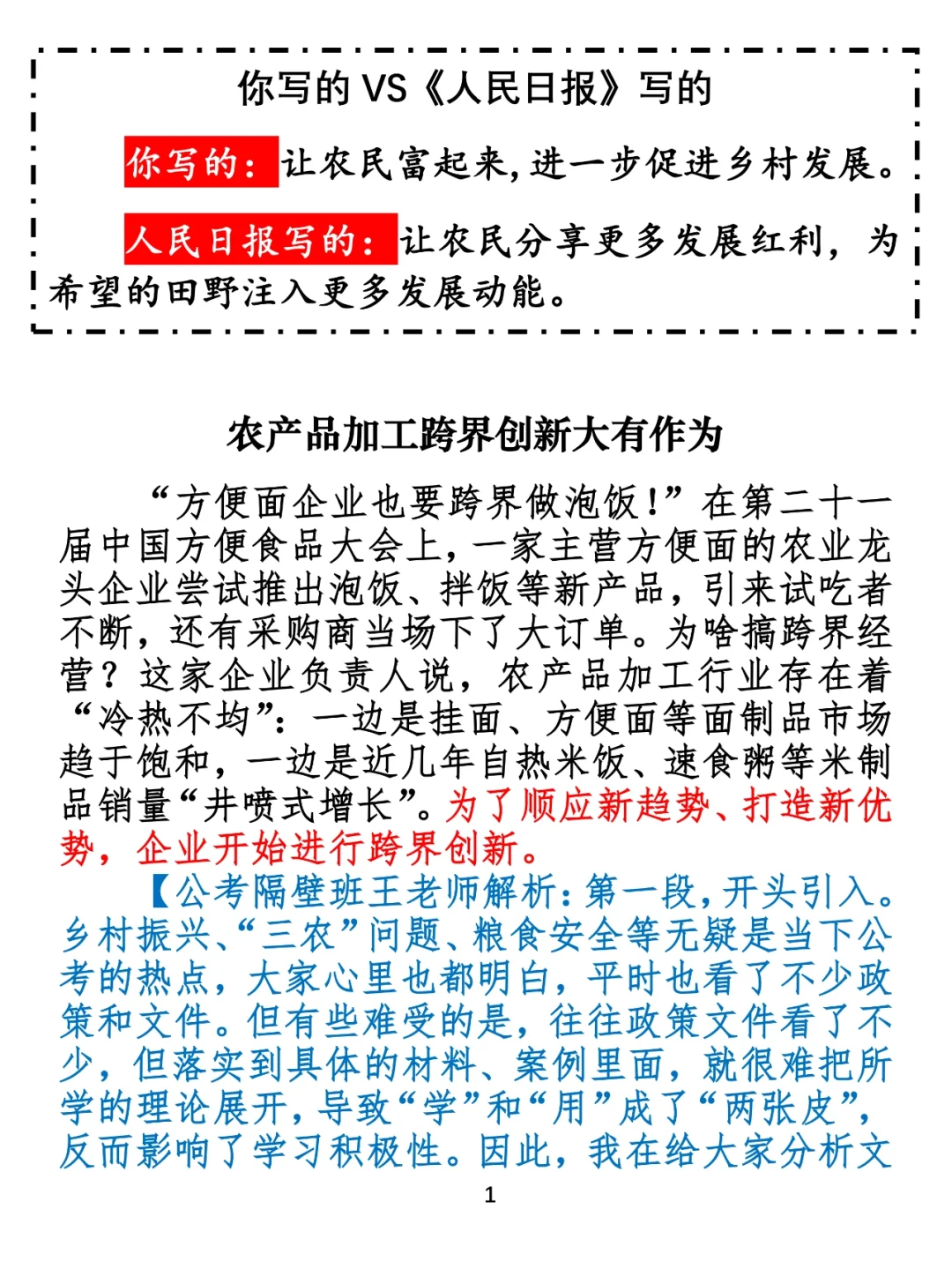 老坛酸菜事件之后,你还吃方便面吗?十年之后回头来看,这一定是推动我国食品卫生跨上新台阶的重大事件。如果申论考“老坛酸菜事件”,会从哪个角度切入呢?看完文章,你可能会觉得很意外。这种意外我想就是学习的意义。走出原有的知识舒适区,我们会遇见更好的自己。 ⭐️ ⭐️ ⭐️ ⭐️ ⭐️ 这里是公考隔壁班王老师独创的“每天半小时 申论80分”抄写团,欢迎加入我们!