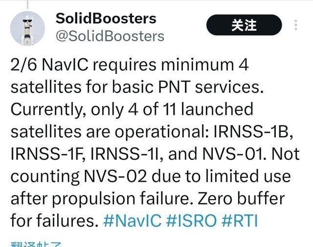 想打造印度版的北斗导航,这个梦想要破灭了:据印度航天博主爆料,印度自主区域卫星导航系统NAVIC星座故障频发,接近崩溃。目前11颗在轨卫星当中,只有4颗能够正常使用。只要再坏一颗,印度导航就将完全失效。 说起印度想搞自己的卫星导航系统,这事儿得从头说起。早年间,1999年卡吉尔冲突那会儿,美国人就把GPS信号给印度军方掐了,这让印度高层意识到,靠别人家的导航系统太不靠谱,得自己来一套。结果,印度空间研究组织ISRO就启动了IRNSS项目,后来改名叫NAVIC,意思是“印度星座导航”。目标挺宏大,就是覆盖印度本土加周边1500公里范围,提供定位、导航和授时服务,精度能到20米以内。听起来跟中国的北斗差不多,都是区域性的自主系统,本意是摆脱GPS、GLONASS这些外来依赖,尤其在军事上能确保信号不被别人随便切断。印度人还想扩展到3000公里,甚至跟全球系统对接。2013年到2018年,第一批7颗卫星陆续上天,号称全运营了。可惜,好景不长,问题很快就冒出来了。 到现在,NAVIC这套系统真有点儿风雨飘摇的意思。总共发射了11颗卫星,但能正常干活的就剩4颗:IRNSS-1B、1F、1I,还有2023年上天的NVS-01。这些卫星勉强维持着基本服务,但信号覆盖和精度都打折扣。剩下的7颗呢?早几年就陆陆续续出故障了。比如IRNSS-1A,从2013年发射后没多久,三个原子钟就坏了两个,最后一个也撑不住,彻底退役。原子钟是导航系统的核心,负责精确计时,坏了就等于卫星瞎了眼,定位误差直线上升。类似地,IRNSS-1C推进器卡死,1D的钟全停摆,1H和1J也因为辐射问题或轨道偏差没法用。2025年1月刚发射的NVS-02,本来是新一代卫星,带了本土开发的鲁比铷原子钟,结果推进系统一出问题,直接卡在转移轨道上,没法进地静轨道,等于报废。这下子,整个星座就靠那4颗吊着命。 为啥会这样?说白了,技术短板太明显。NAVIC的原子钟一开始全靠进口,主要是从欧洲供应商那儿买的,这些钟辐射耐受性差,在太空高辐射环境下容易出毛病。印度人想搞本土化,开发iRAFS鲁比铷钟,但进度慢得像蜗牛。NVS系列本来要用这个新钟,结果测试反复失败,辐射模拟下钟就崩。ISRO的报告里承认,钟的漂移率超标,寿命缩短。发射节奏也跟不上,印度一年就那么几次窗口,PSLV或GSLV火箭虽可靠,但不像中国或美国那样批量上天。经费更是个大坑,第一期NAVIC只砸了3.5亿美元,跟北斗的数百亿比,简直是小巫见大巫。印度航天野心不小,又搞载人飞船、月球采样、太空站,这些项目抢资源,NAVIC的替换卫星推到2026年了,还得看钟开发行不行。 这故障频发的影响可不小。先说军事上,NAVIC是印度军队的战略支柱,用来导引导弹、协调部队行动。要是全崩了,印军就得回头用GPS,那在边境冲突中等于把命门交给别人。想想卡吉尔那次教训,现在中印边境或印巴对峙,导航中断意味着火力支援失准,侦察机定位偏差,后勤补给乱套。印度防务圈子里议论纷纷,说这系统本该是自主安全的,现在反倒成隐患。民用方面也麻烦,渔民靠它找鱼群,农业用无人机喷肥,灾区救援定位,这些都得用NAVIC。信号弱了,精度掉到公里级,手机APP导个航就迷路,应急广播也卡壳。政府还推全民化,2025年底前所有5G手机必须支持NAVIC L1频段,但卫星不稳,芯片再牛也没用。Qualcomm已经在芯片上加支持,可用户端呢?信号一断,等于白搭。 修复计划听起来有谱,但落地难。ISRO目标是2026年前上三颗NVS卫星,补齐7颗全星座,用GSLV火箭带本土钟。但钟开发小组报告延迟,实验室测试失败率高,辐射模拟下钟晶体就碎。预算会议上,载人计划和月球任务挤占份额,NAVIC运维经费勉强够日常。供应商谈判也卡壳,欧洲钟贵又不稳,本土替代遥遥无期。高层像V. Narayanan主席在议会说,会优先替换,但时间表滑到2027-2028,完整恢复得2030年。战略上,印度还想跟美国、日本的系统互操作,但自家后院起火,先顾好基本面。 这梦想要破灭,不是一天两天的事儿。NAVIC从启动到现在,暴露了印度航天的基础问题:技术追赶快,产业链不全,资源分散。北斗花了20年,砸大钱建全链条,印度呢?起步晚,预算紧,摊子铺大。结果,自主导航本该是骄傲,现在成笑柄。军事上,这事儿提醒印度,边境安全不能光靠嘴上说,实战可靠性得过硬。国际上,美国人推QUAD合作,印度想借力,但自家系统不稳,合作也打折。长远看,或许这危机逼ISRO加速本土化,钟芯片自己搞定,发射频率提上去。但眼下,星座摇摇欲坠,再不补救,印度版的北斗真就成泡影了。