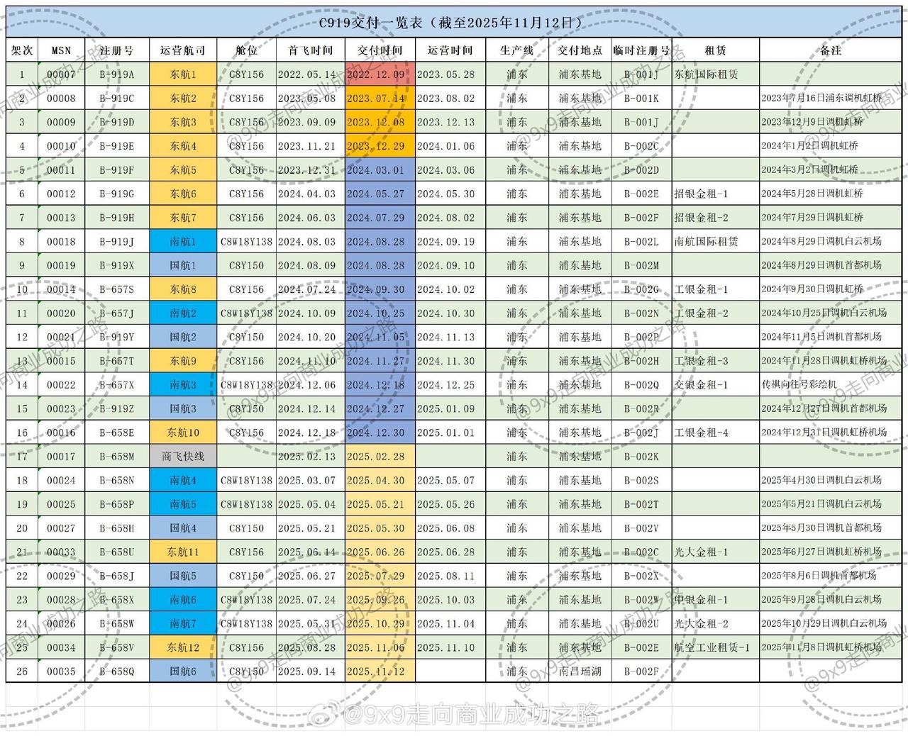 C919的交付数量今年破10了! 此前还在担心今年C919的数量很难达到10架呢,今天这个目标就已经实现了,接下来还有一个多月的时间,能否上演一个小小的奇迹,超过去年的12架成绩呢? 截至目前C919已经交付了26架,其中25架都是交给的三大航空公司,这些飞机开辟了越来越多的航线,越来越多的航点。