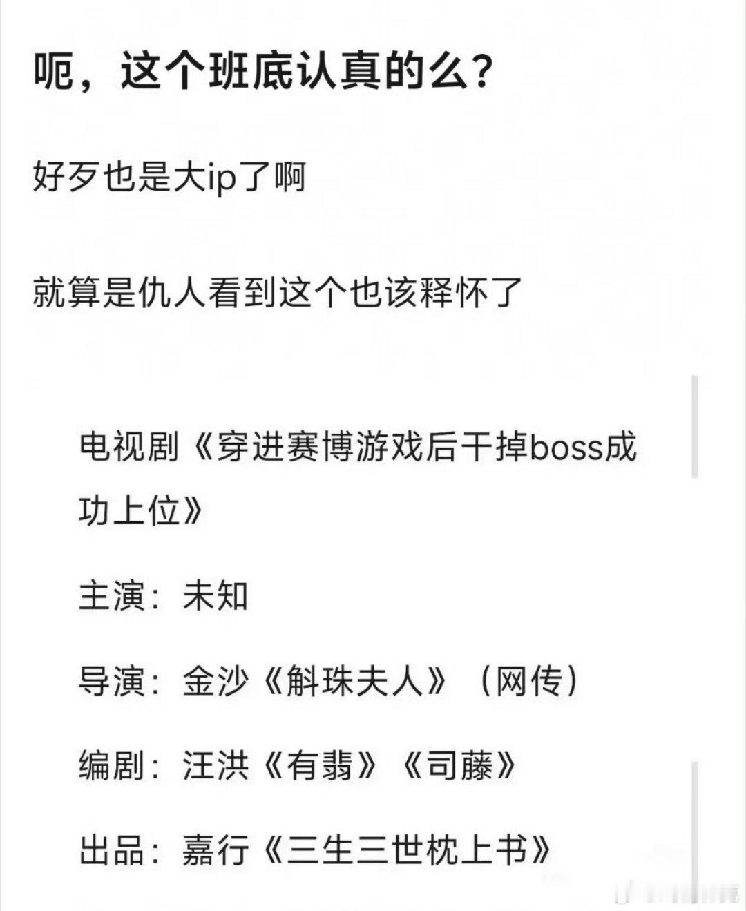 《穿进赛博游戏后干掉boss成功上位》这班底也太凉了,糟蹋IP。有瓜说女主是迪丽热巴