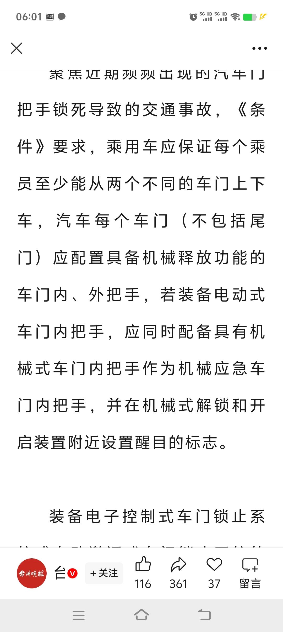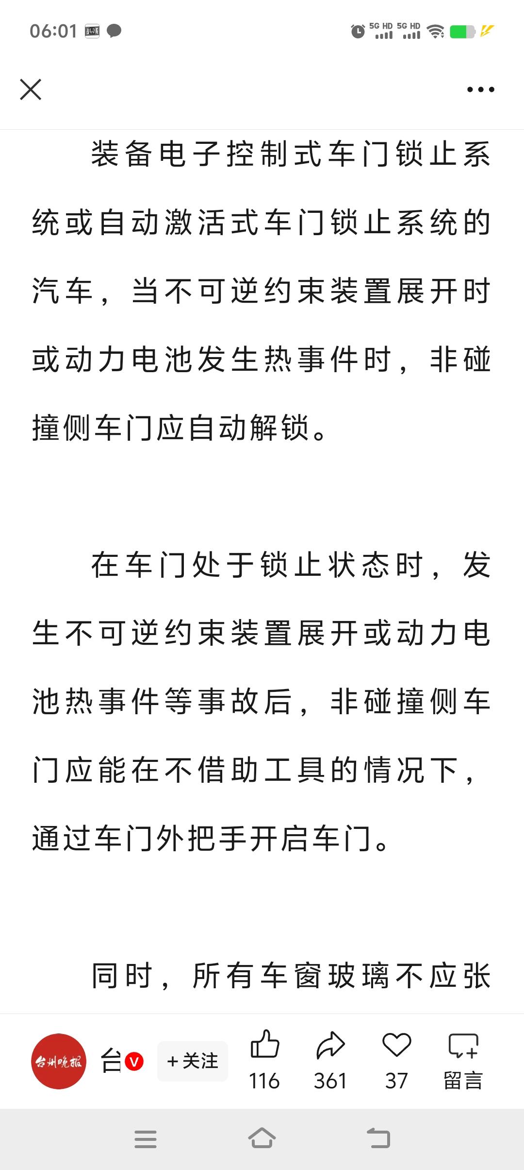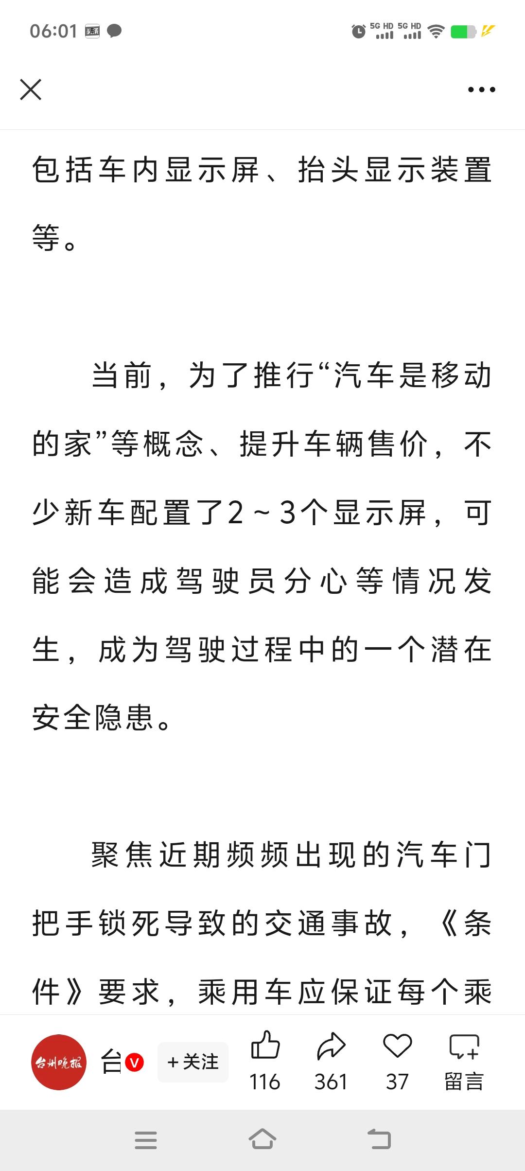 重大调整!不握方向盘还能玩游戏追剧的“智驾脱手神器”,或将彻底退出历史舞台! 近日,最新版本的《机动车运行安全技术条件》征求意见稿已经公布,全是实实在在的干货,都是为了让驾驶汽车更安全。 首先,对于电车上最火热的智能辅助驾驶系统,做出了明确的规定,简单来说就是首先要确认驾驶者身份,且熟悉基本的操作后才能启用辅助驾驶系统。 辅助驾驶模式下,你的手或视线一旦离开方向盘,或将不再进行自动驾驶。 这是一项非常重要的的改革,不仅彻底断绝了“懒汉”们方向盘都不握的轻率行为,更为其他车辆和驾驶员的安全负责,这个必须要大大的点赞。 不仅如此,只要车速大于每小时10公里,将禁止打开液晶屏的娱乐系统和游戏,将安全驾驶进行到底。 针对一部分驾驶员,误把油门当刹车的错误操作,新的标准增加了车辆在静止和蠕动的状态下,限制动力输出的安全标准,这个更是非常好的一个配置。 还有其他几项非常好的改革,你们自己看吧,个人觉得这些都是非常非常好的标准,一旦实施,交通安全环境会得到极大的改善,安全才是回家最近的路。智驾驾驶 智驾技术竞争 智驾对比 智驾辅助驾驶 汽车 @汽车天涯 @汽车之家 @懂车帝原创