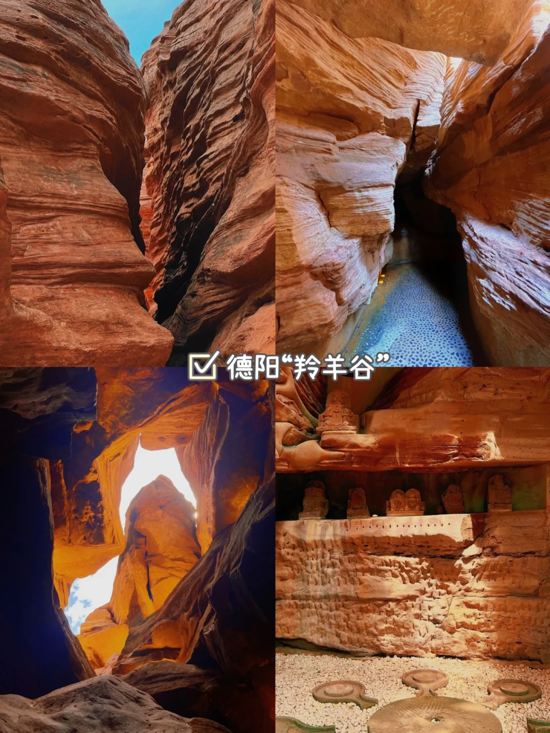 距离德阳市区半小时就能看到美国同款“羚羊谷”,真的感叹大自然的鬼斧神工,巨大的石壁上被长年的雨水冲刷出的波浪型纹路,里面还有各种不同的峡谷洞群风景,拍照超级好看