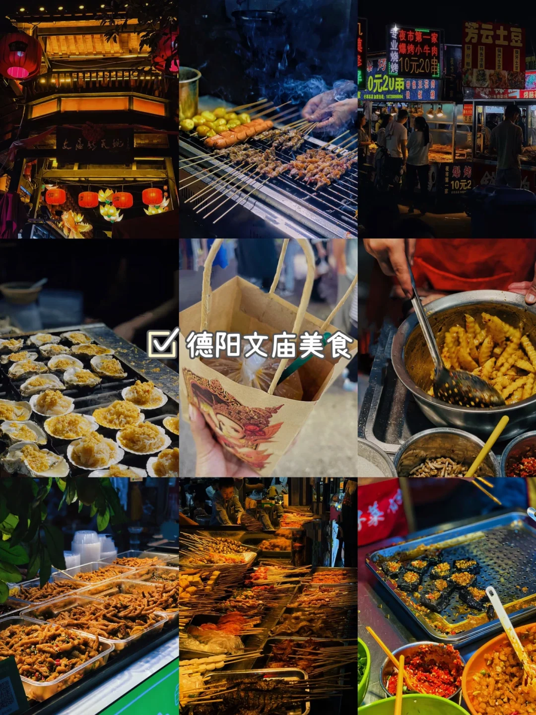 ✔️德阳文庙新天地,夜市几条街的美食,价格便宜,推荐伤心春卷,烤豆皮,片粉等,保证吃到扶着墙出来