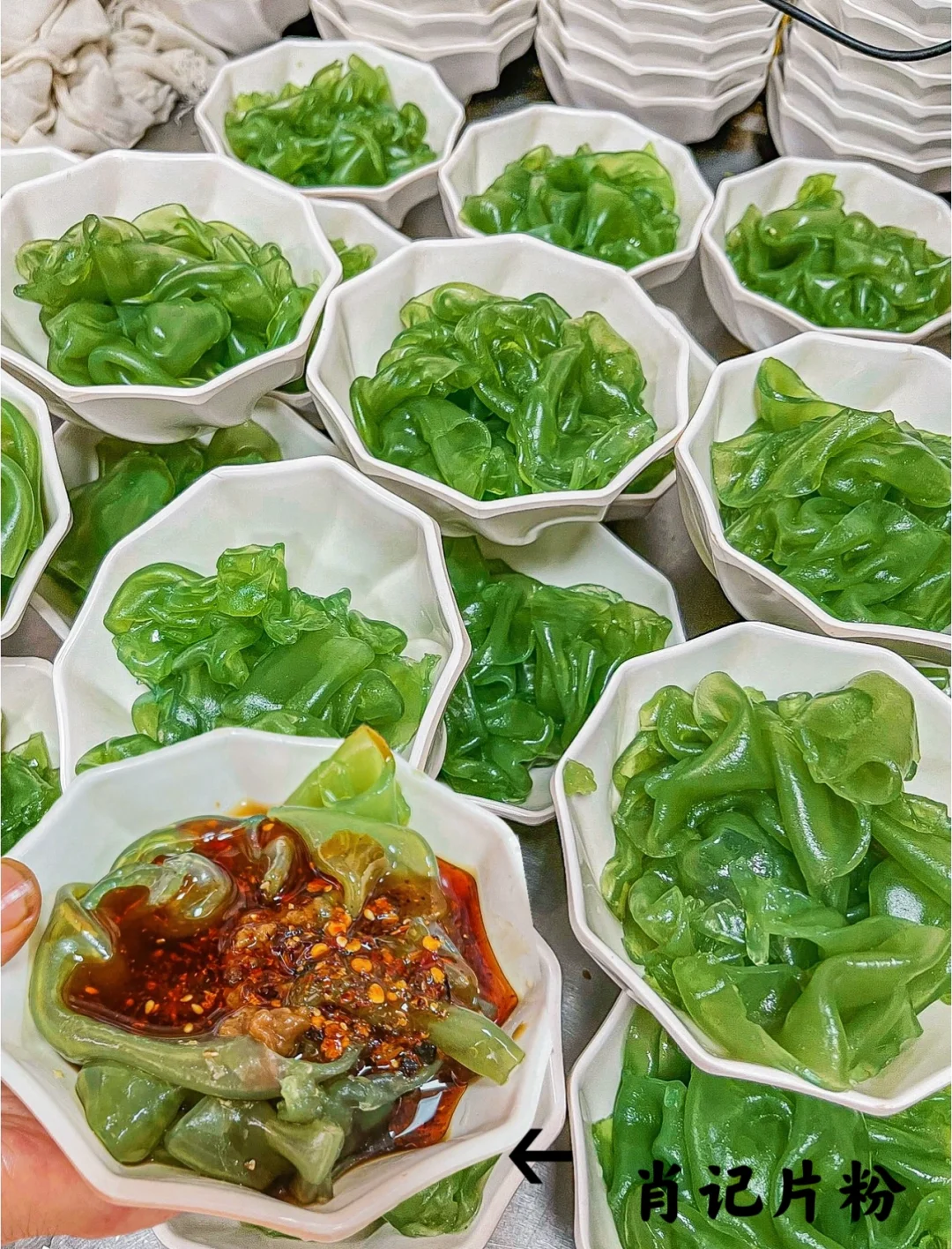 ✔️德阳老字号肖记片粉,来德阳必打卡,绿色的片粉晶莹剔透,口感超级软糯入味