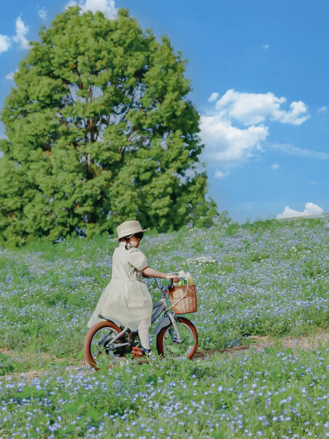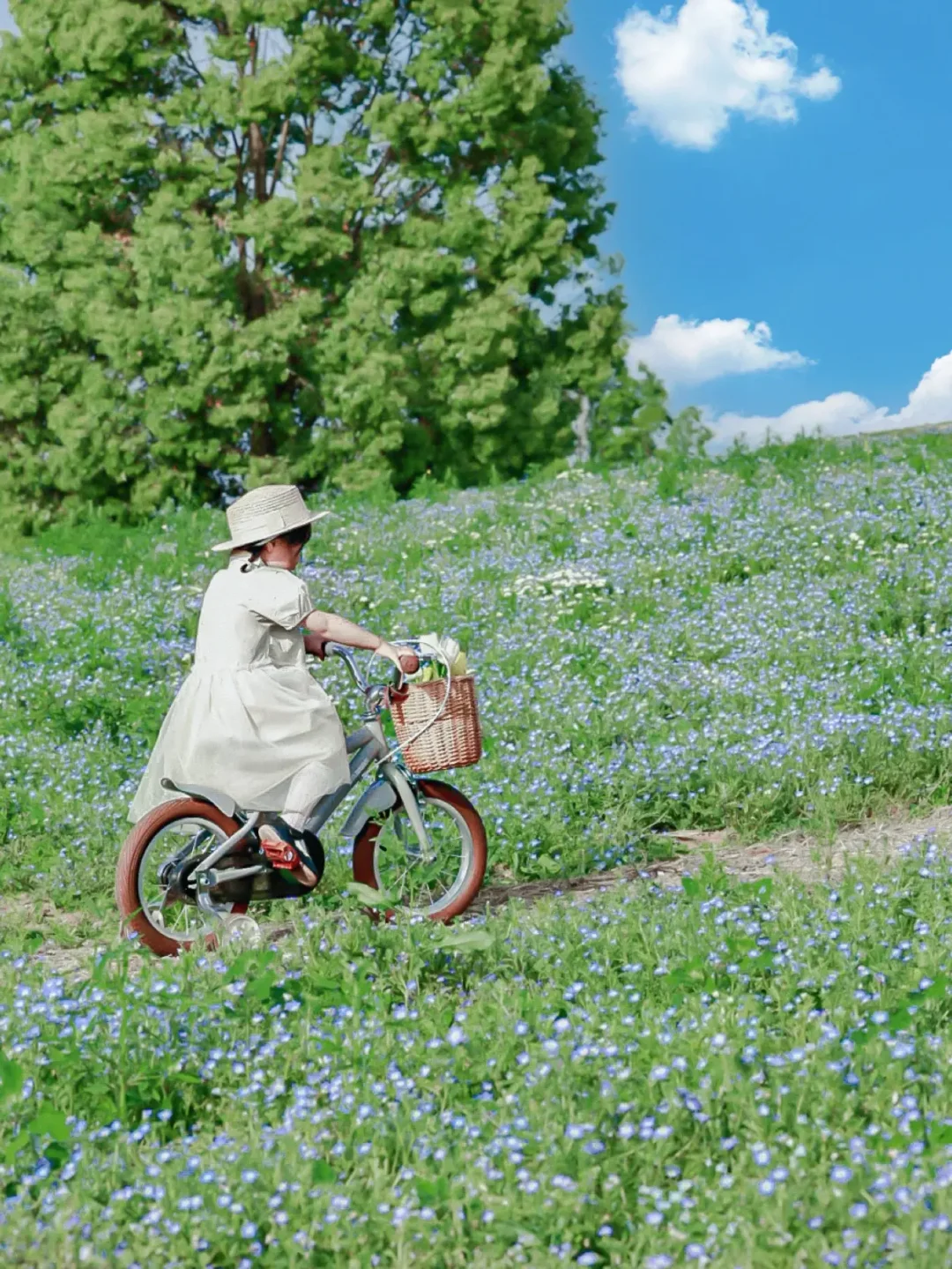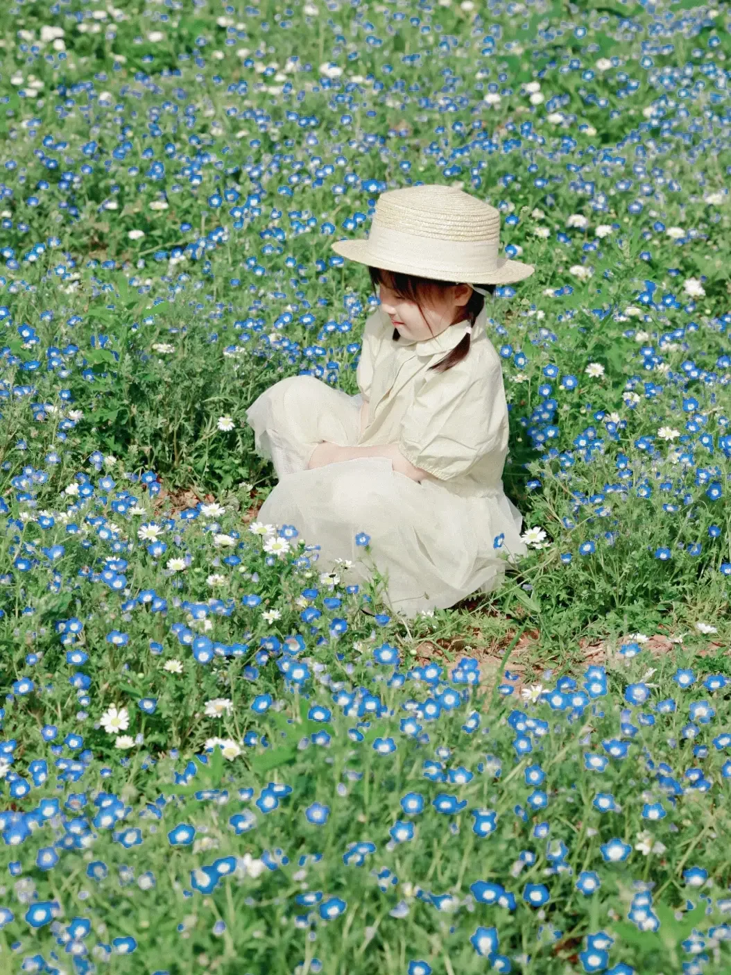 ✔️建议穿浅色连衣裙配上草帽,非常的搭蓝色小花