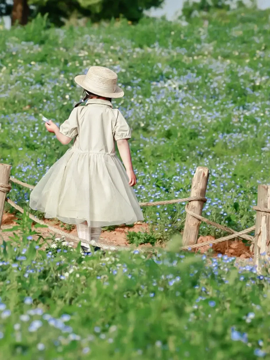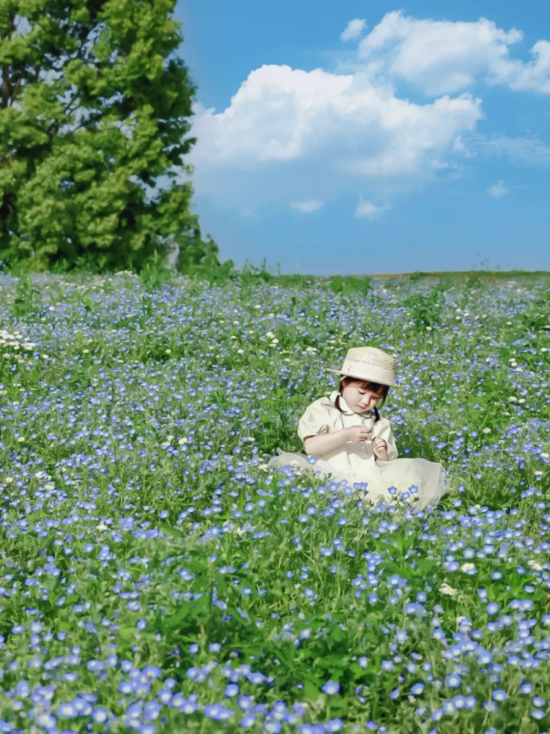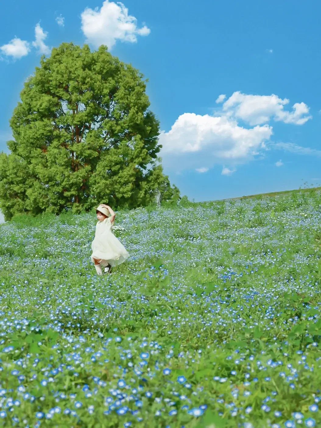 ✔️建议穿浅色连衣裙配上草帽,非常的搭蓝色小花