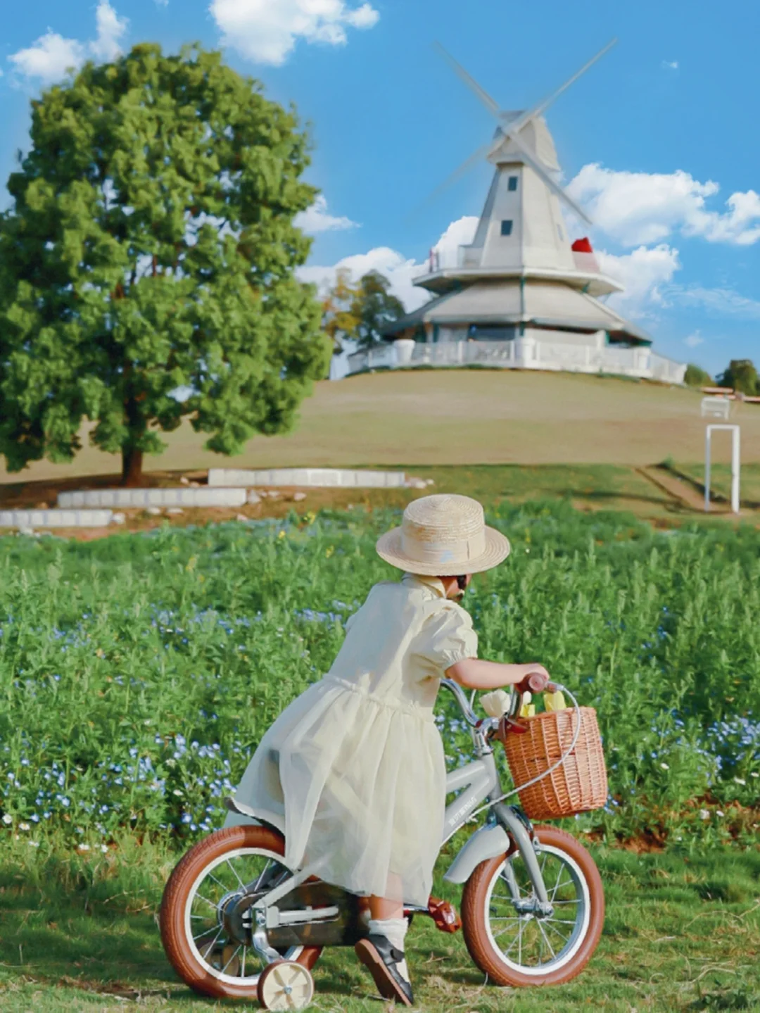 4⃣️花海中设有许多小路方便大家拍照,让小朋友奔跑,或者骑行在花海的小路中,你随意抓拍,配上好天气的花,每一张都特别像宫崎骏的夏天