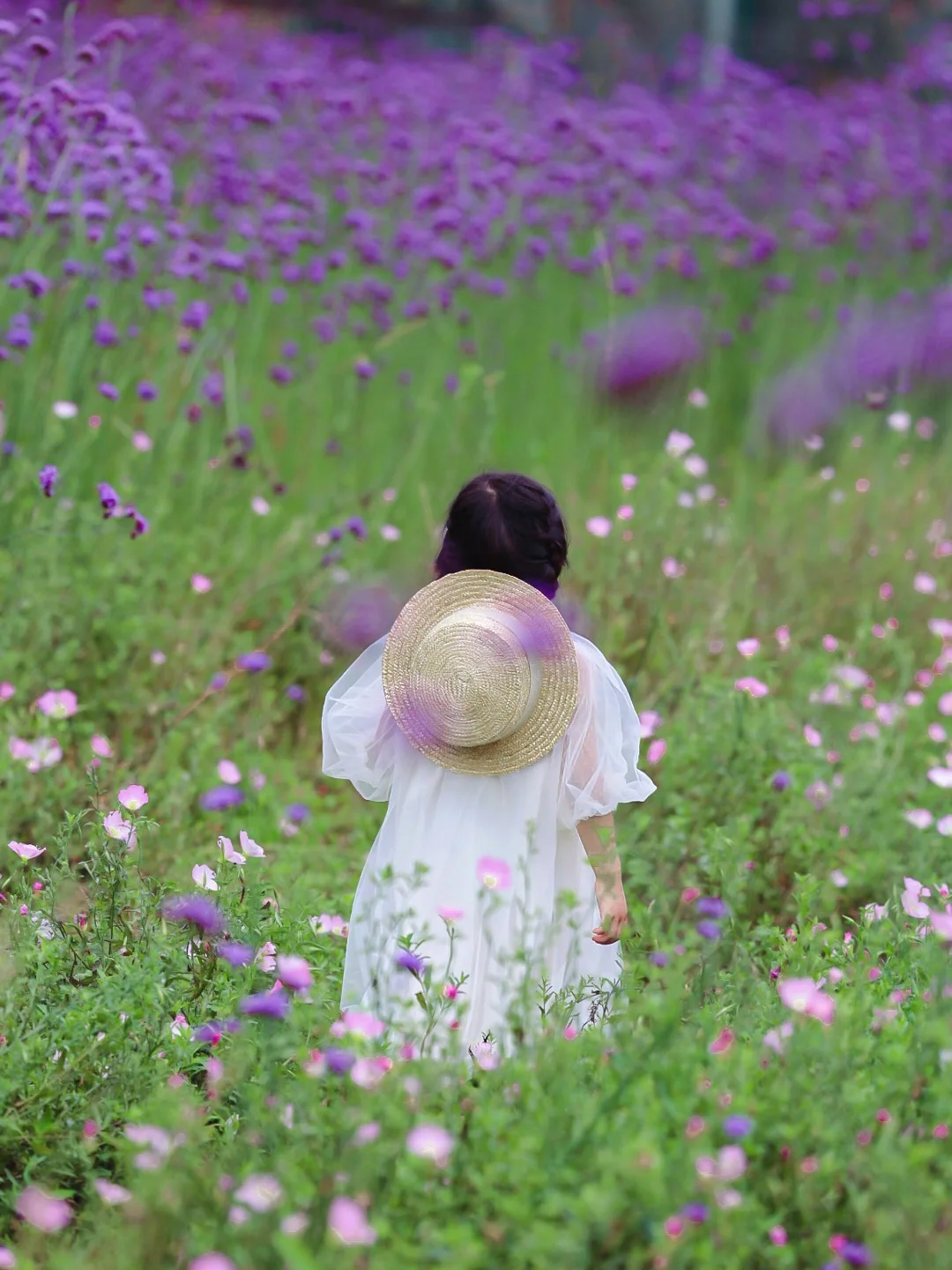 2⃣️建议穿白色或者法式一点的连衣裙,带个编织帽和报纸等道具,坐在花海的凳子上拍真的很出片