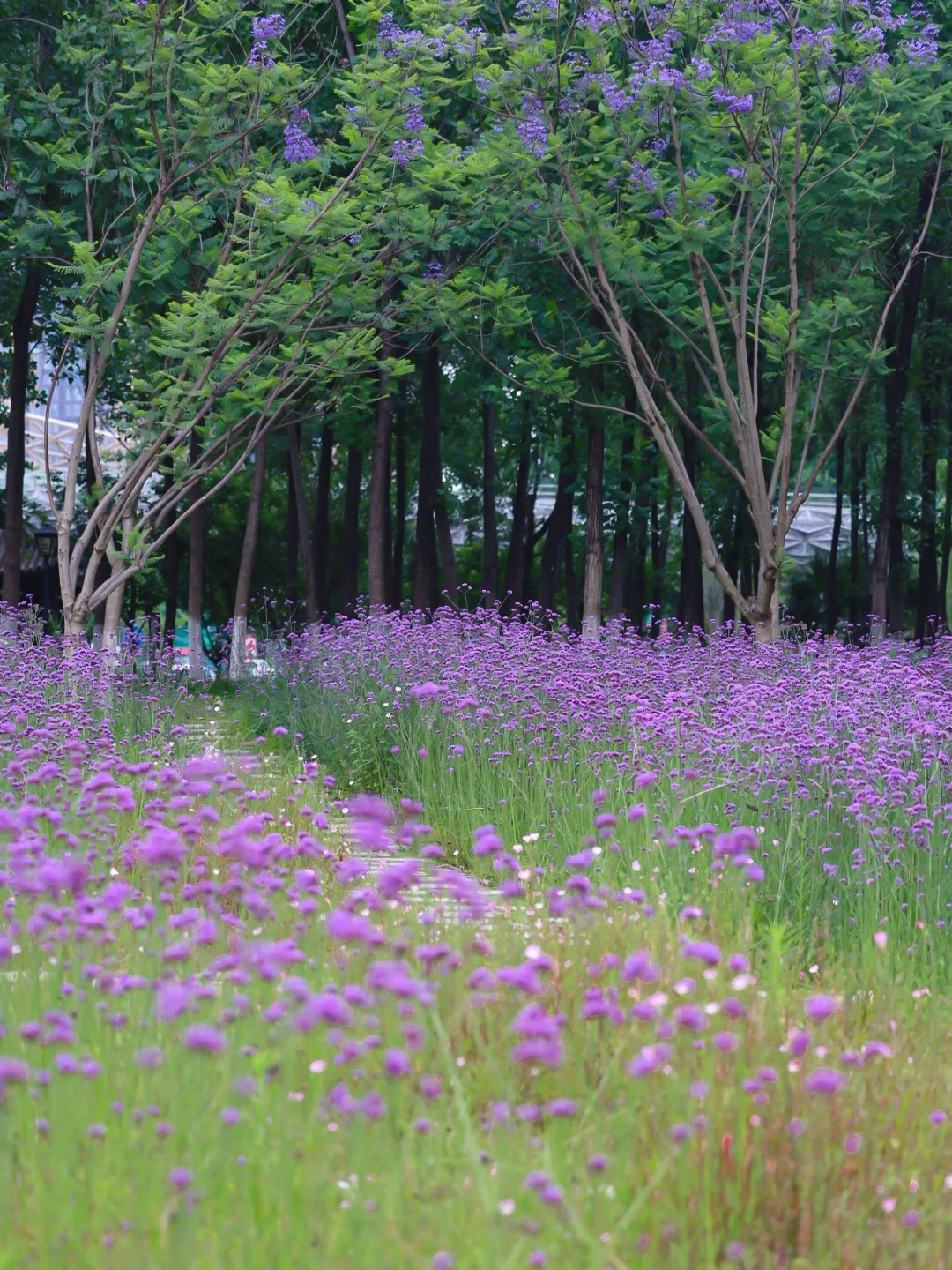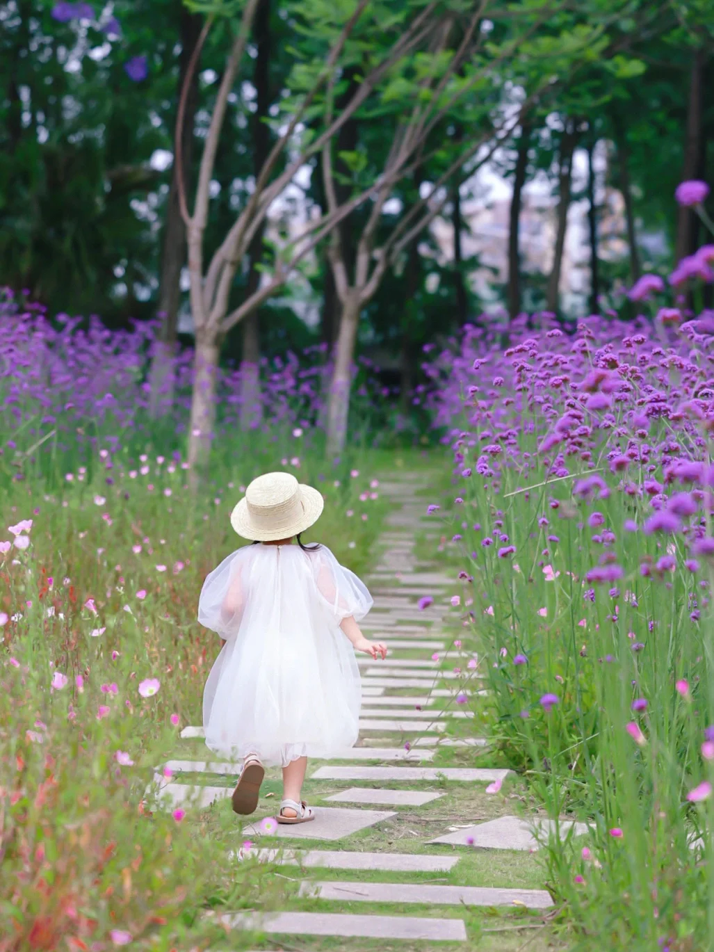 嗨,我是喜欢带娃出游的豆芽麻麻,最近天气比较凉爽,所以平时会带豆芽去公园转转,没想到今天却意外收获了一大片超梦幻的马鞭草花海,花海下面的小路上还盛开着五颜六色的月见草,周围还有一排蓝花楹,这画面简直太美了,忍不住又记录下来分享给你们