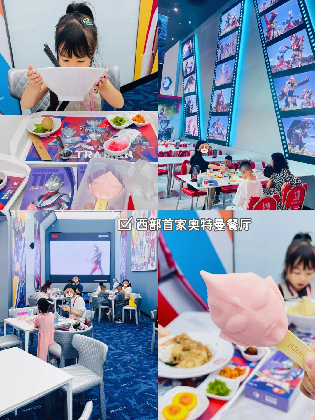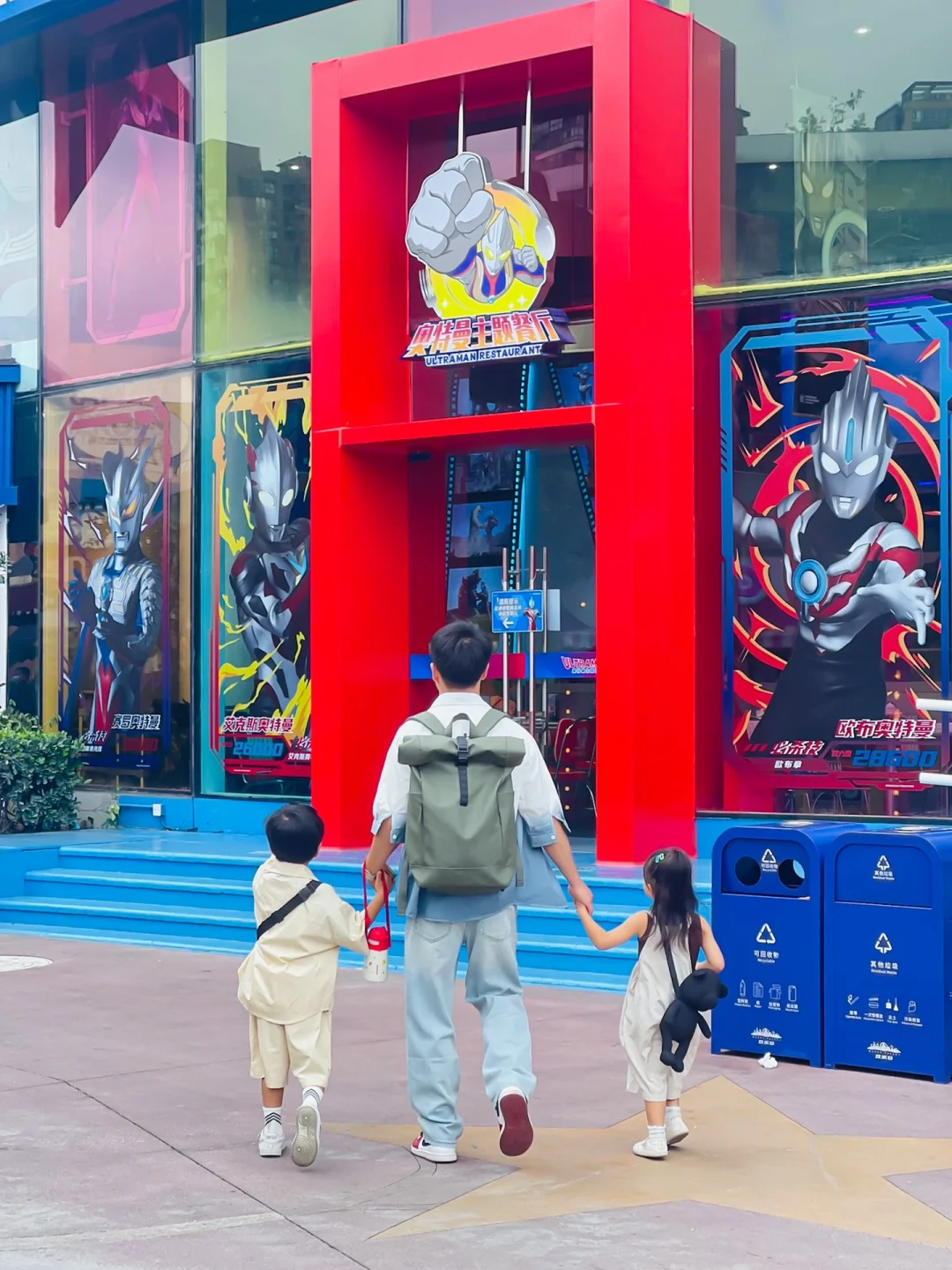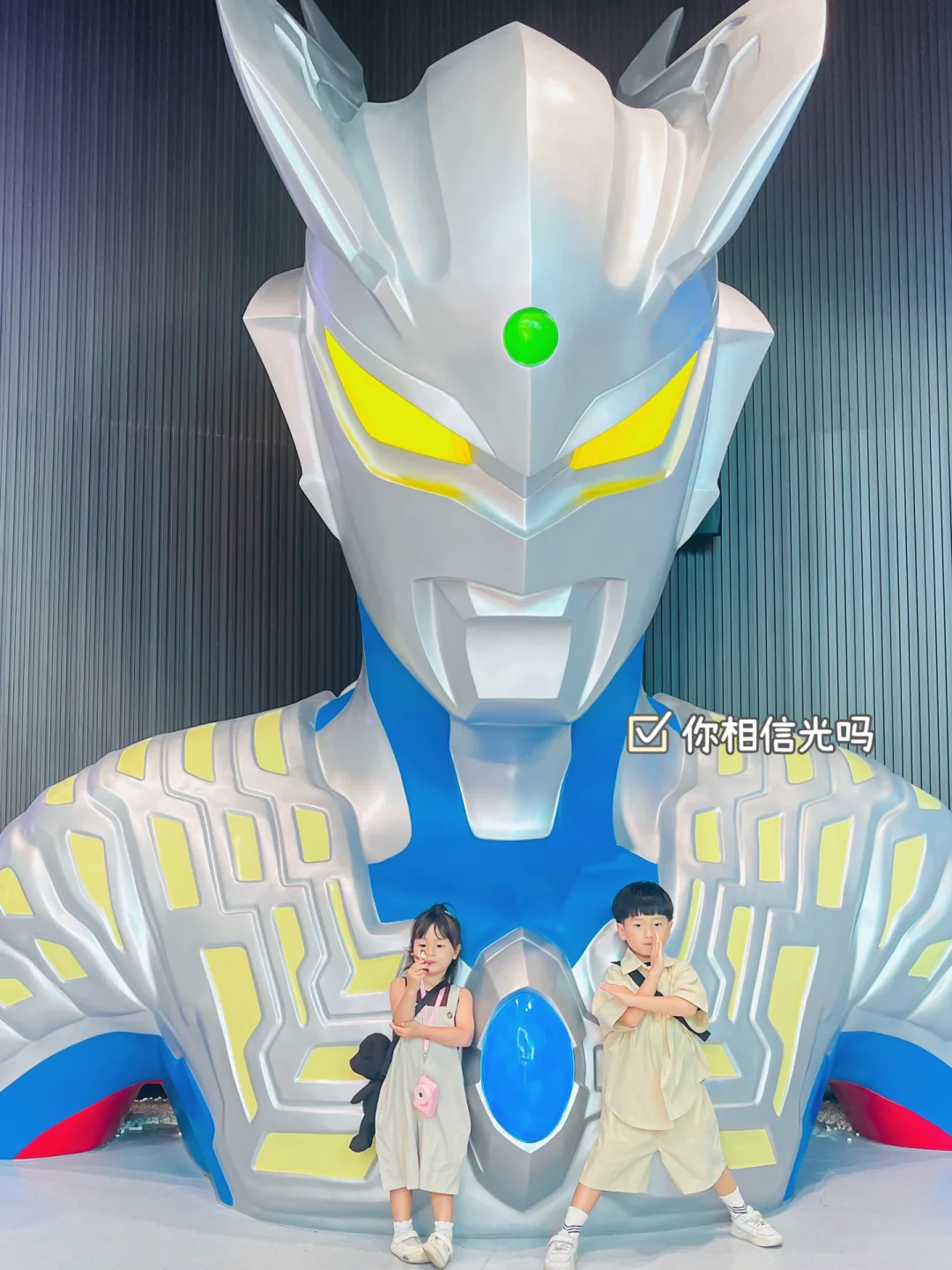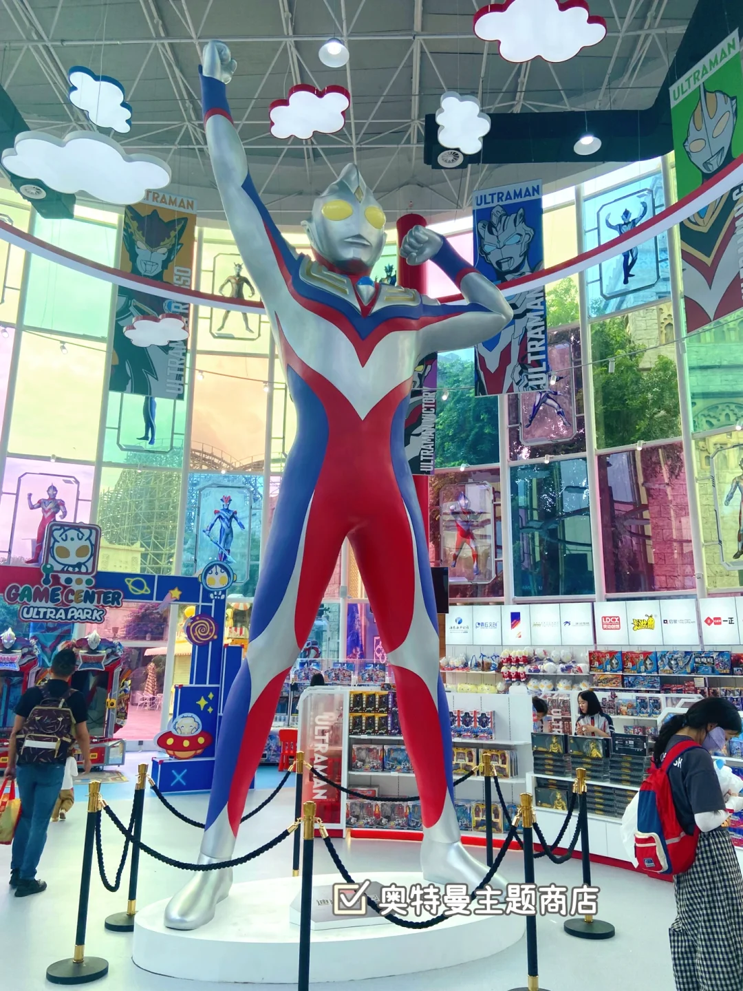 走进大门就能看到一个巨型塞罗半身雕像,俩孩子兴奋的立刻跑过去合影,往里走还有着各种奥特曼手办和变身器等,最后有一个7米多高迪迦奥特曼雕像的商店,孩子们一进去就走不动路了!如果逛累了,旁边还有奥特曼主题餐厅可以就餐,悄悄告诉你们奥特曼冰淇淋超好吃