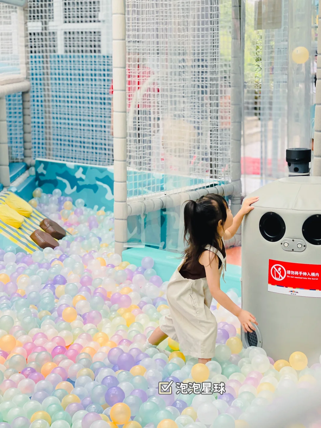 新开发的区域,不仅可以玩水玩沙,还有可以攀爬的森林小树屋,最让豆芽走不动的应该就是泡泡星球了,一进去了就放飞自我,根本不想出来,简直就是孩子们的儿童天堂