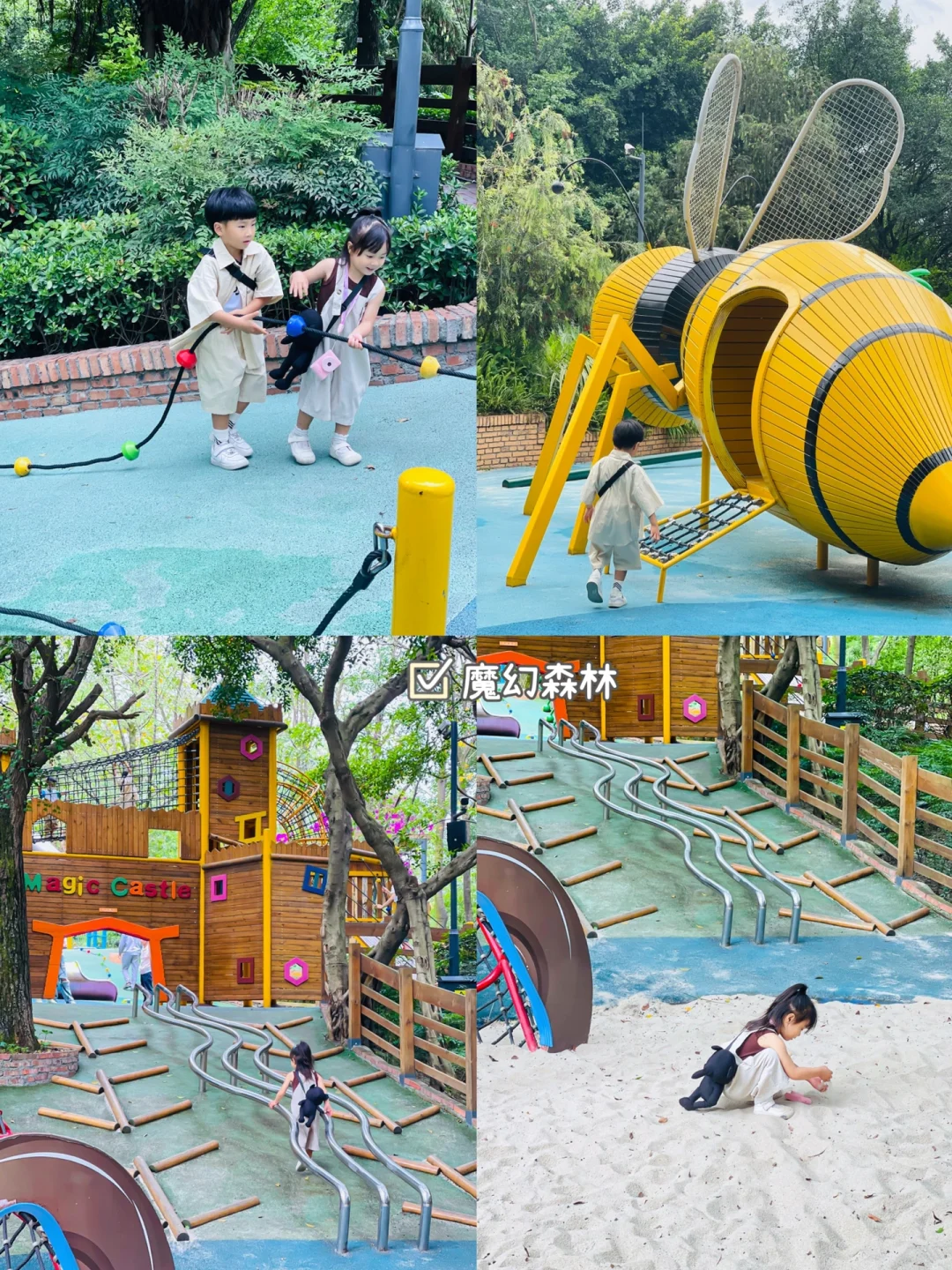 这里有许多无动力攀爬设备,也有滑滑梯,蹦床,沙坑等,对年龄稍微小一点的宝贝们来说非常适合