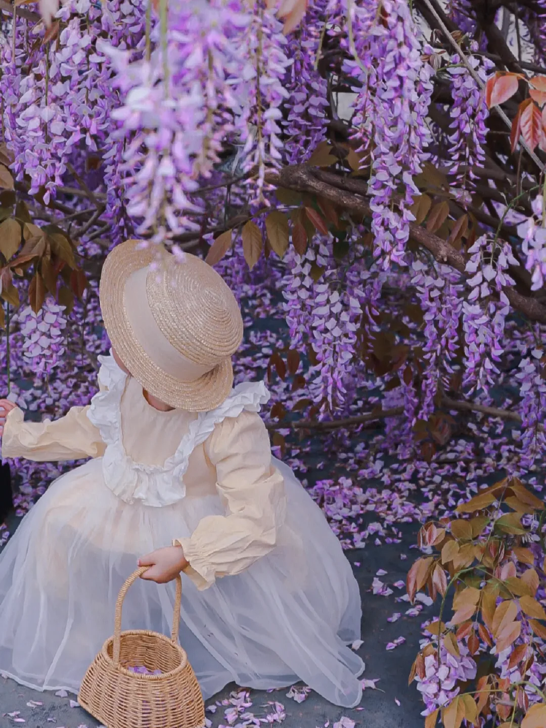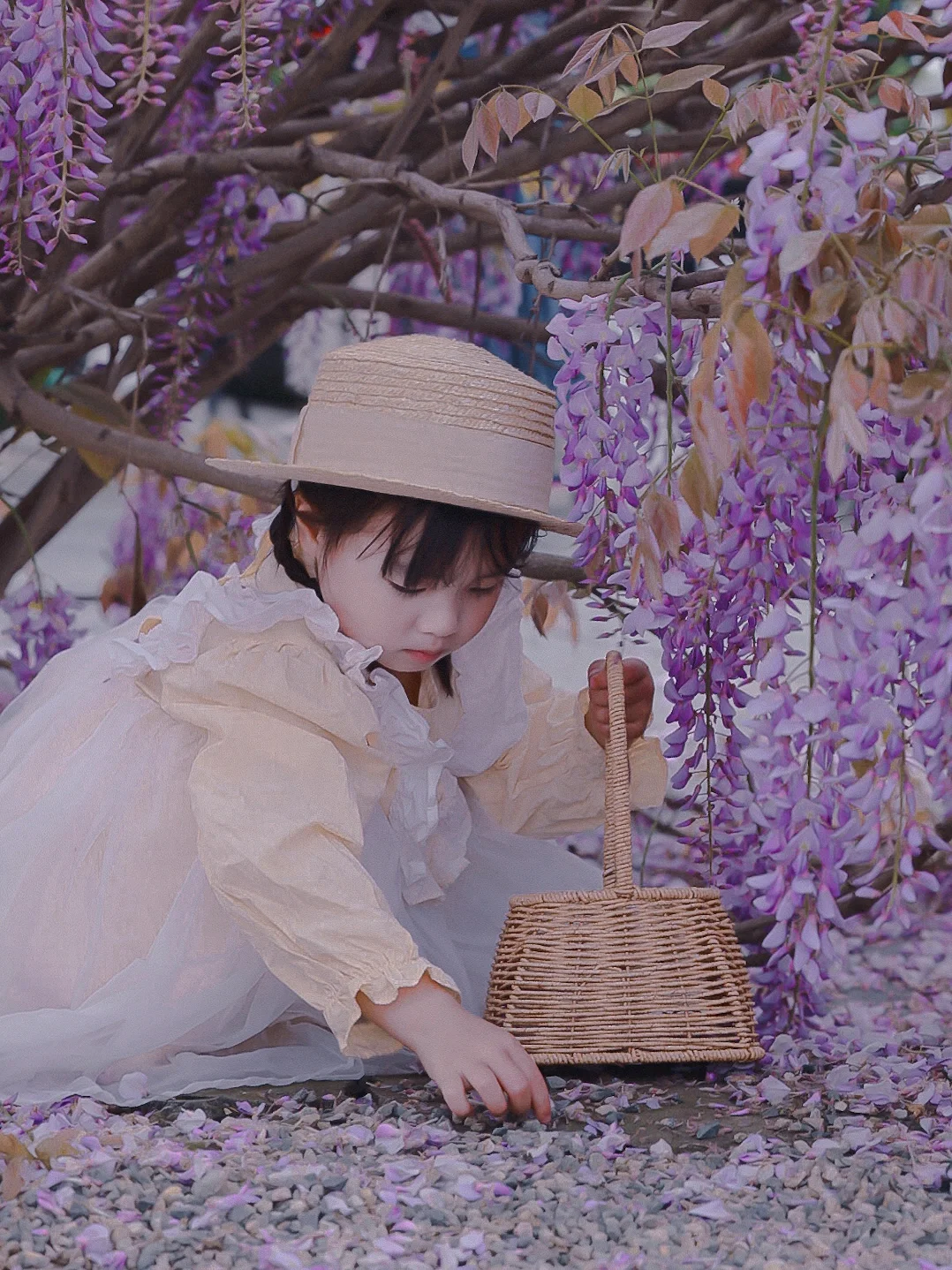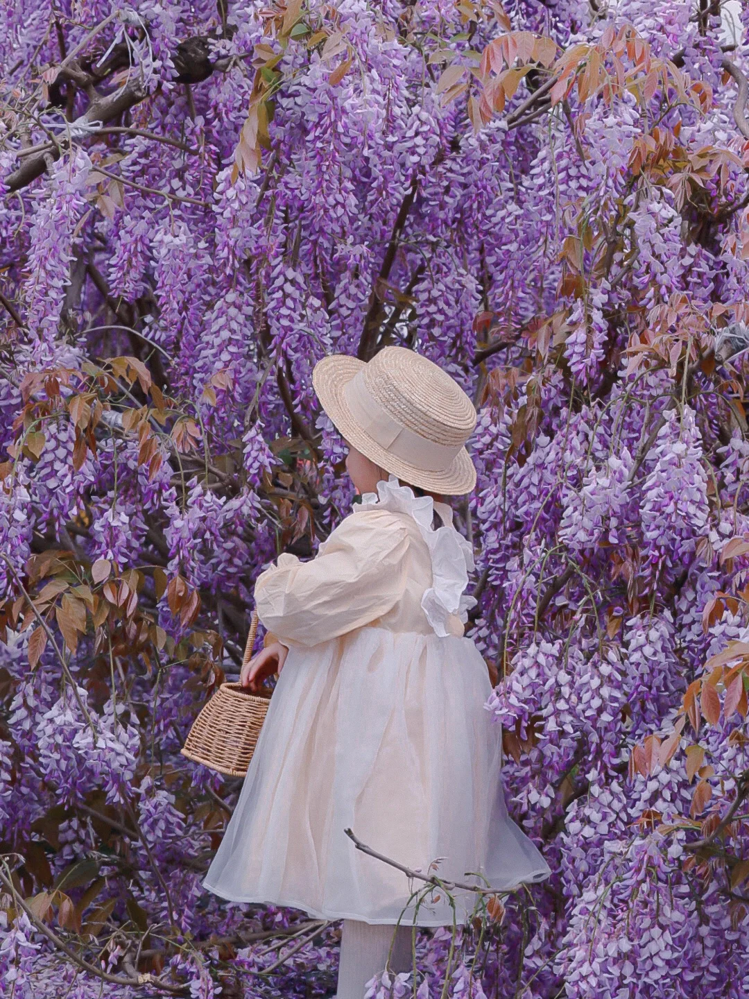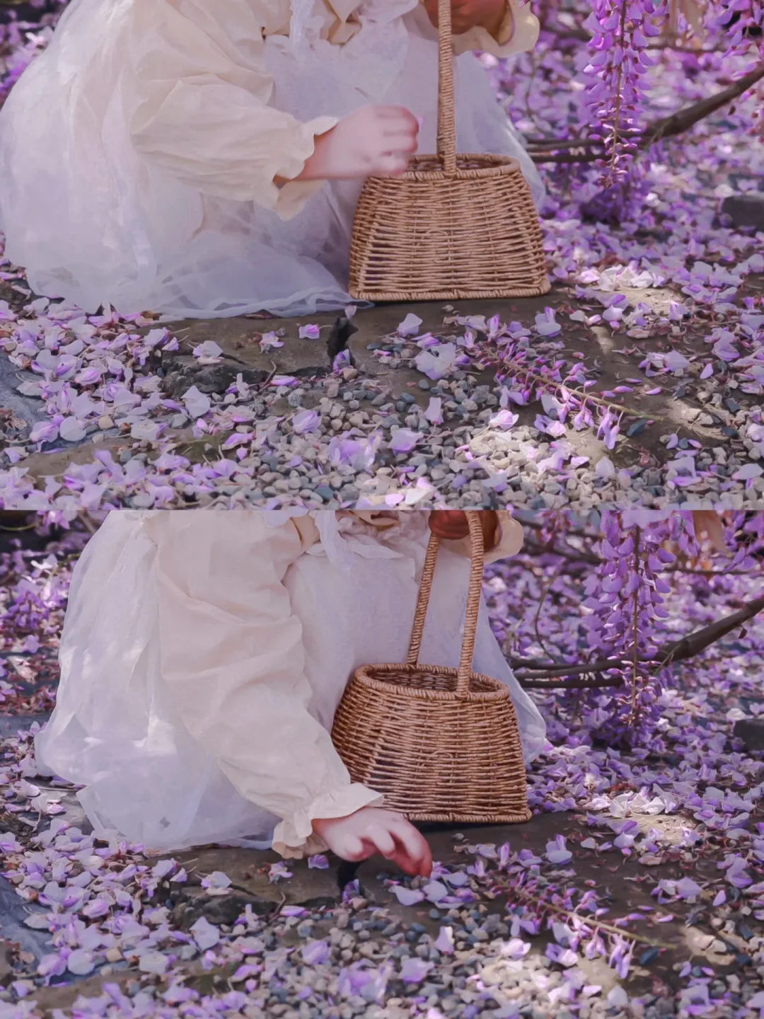 嗨,我是喜欢带娃出游的豆芽麻麻,最近真的被成都的各种花花所包围啦,本想着去海蒂和噜噜的花园拍木绣球,但却意外被这这颗紫藤花树吸引了,看着地上满满一地的紫色花瓣,豆芽便钻进花藤中捡起了“掉在地上的春天”