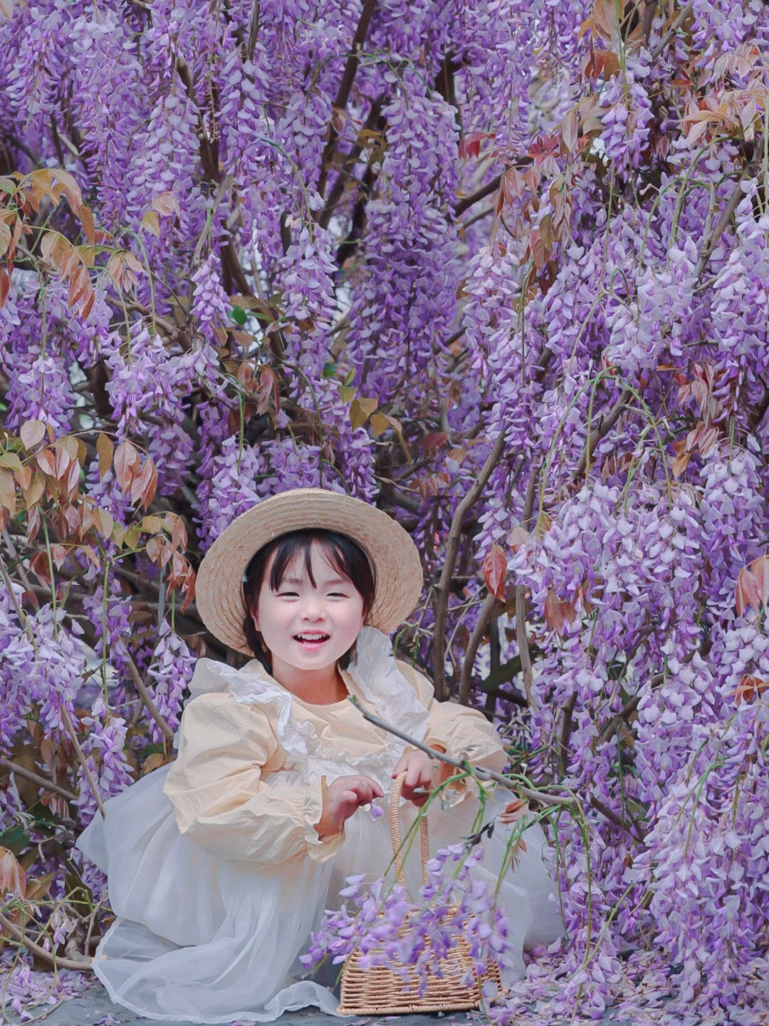 ✔️紫藤花树很矮,小孩子不管是站着还是蹲着都刚刚好拍到,这里就比较适合拍人像啦