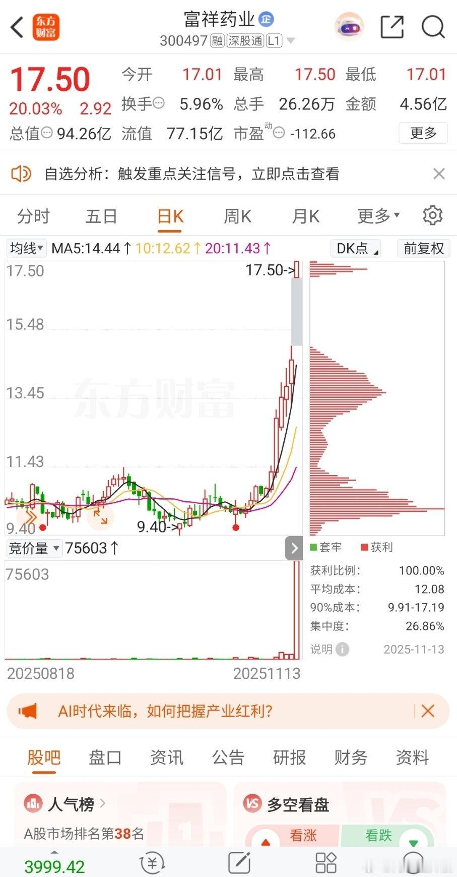 $富祥药业sz300497$阿龍盘中实盘更新吃大肉恭喜参与的伙伴