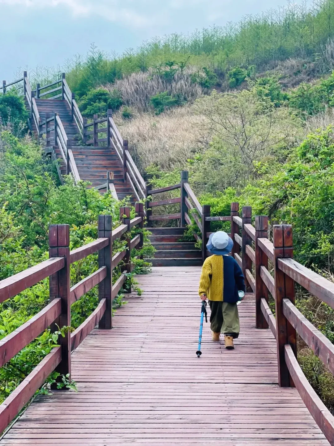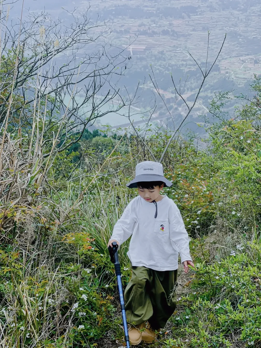 ✔️给孩子准备一根登山杖,可以帮助孩子探路并辅助登山