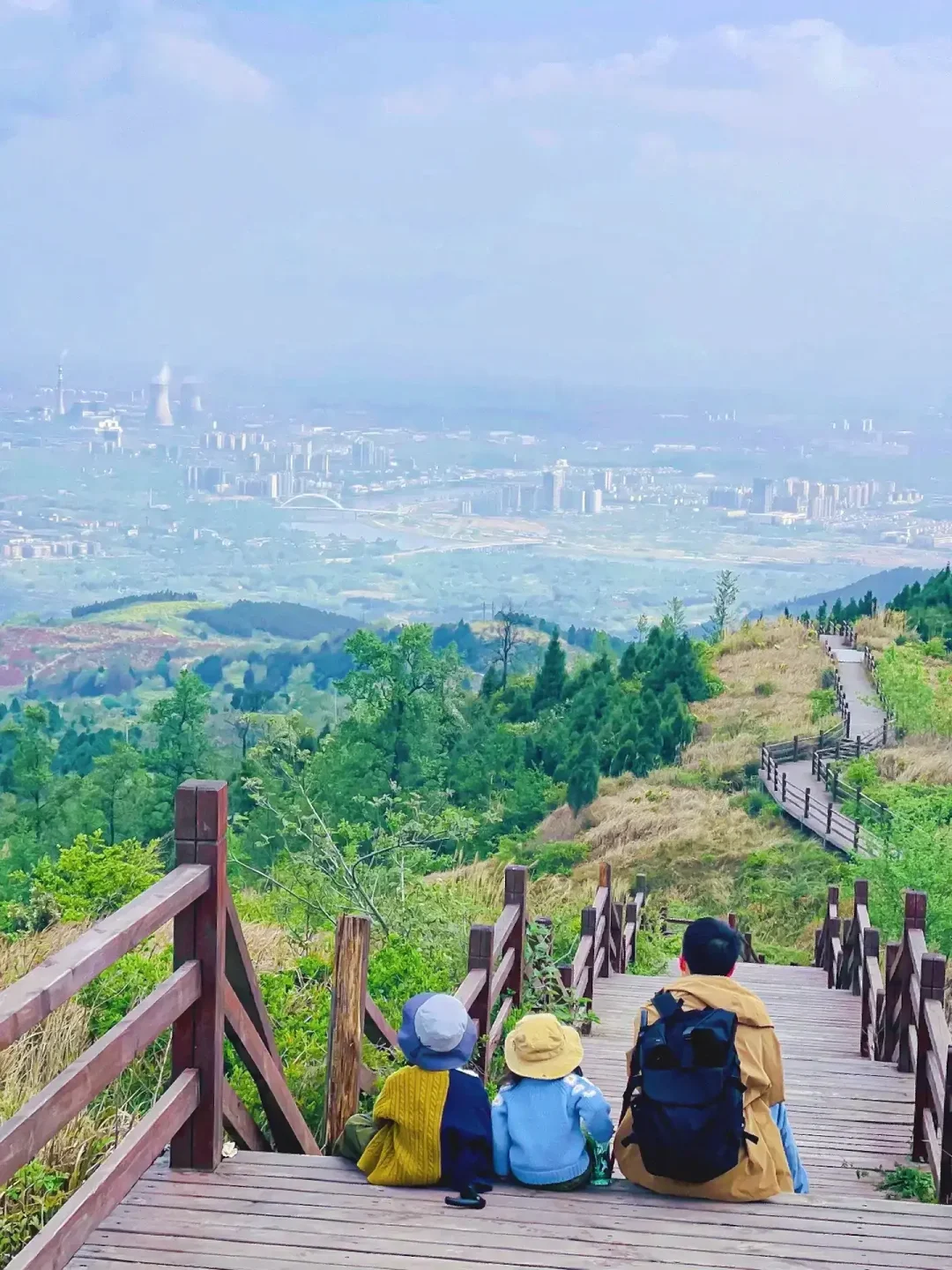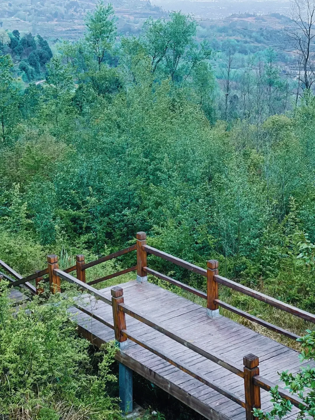 ✅二是可以将车开到灵开寺,寺庙门口有免费的停车场,从这开始就是全程绿道了,可以一直徒步到龚家山观景平台,单程约3公里左右,途中设有许多的观景台可供休息,我们一直走到了最高的观景平台,这里一边可以俯瞰沱江小三峡的全貌,另一边还可以俯瞰城市景象,真的非常漂亮,这条路线我也强烈推荐,亲子无压力