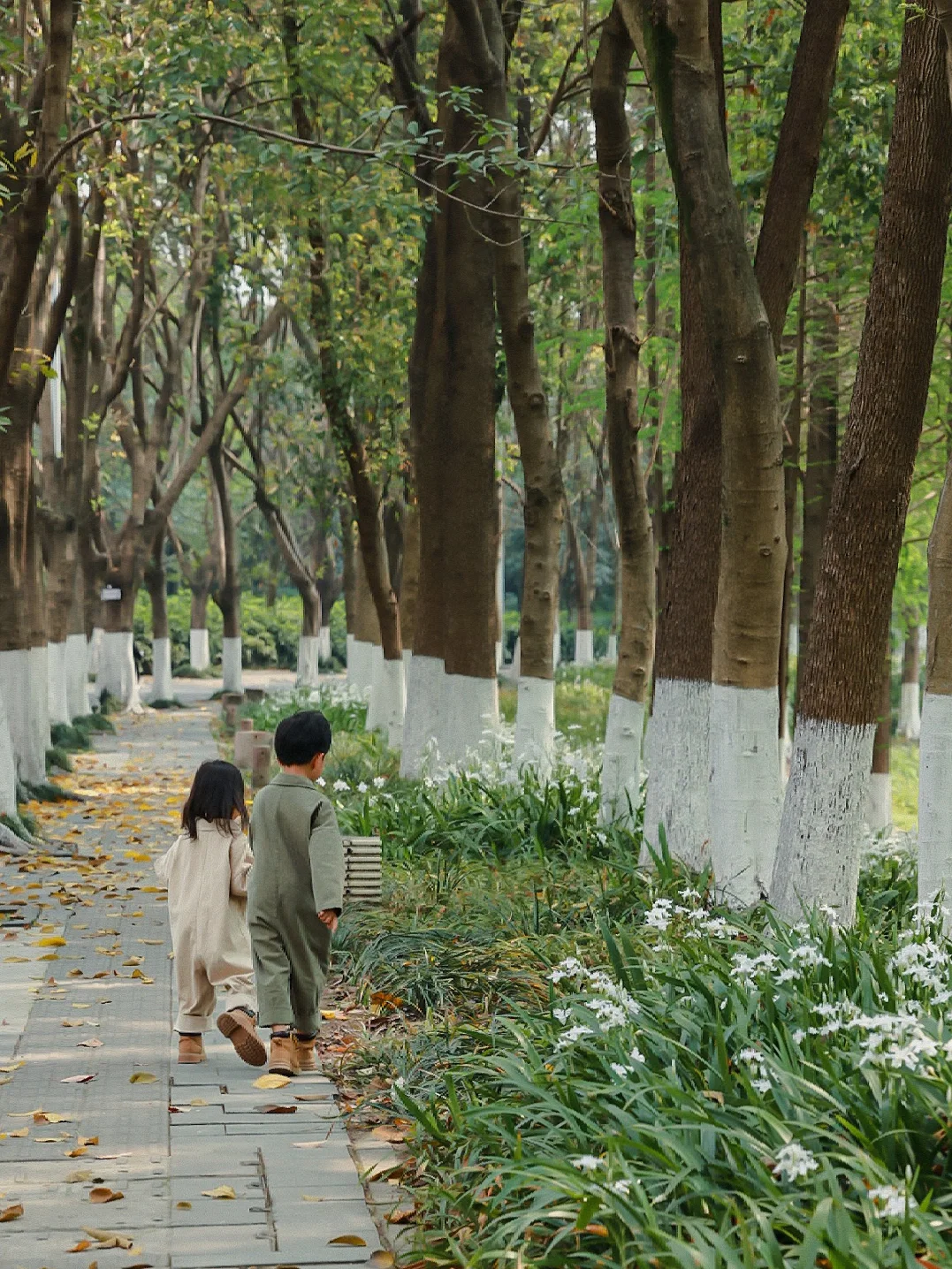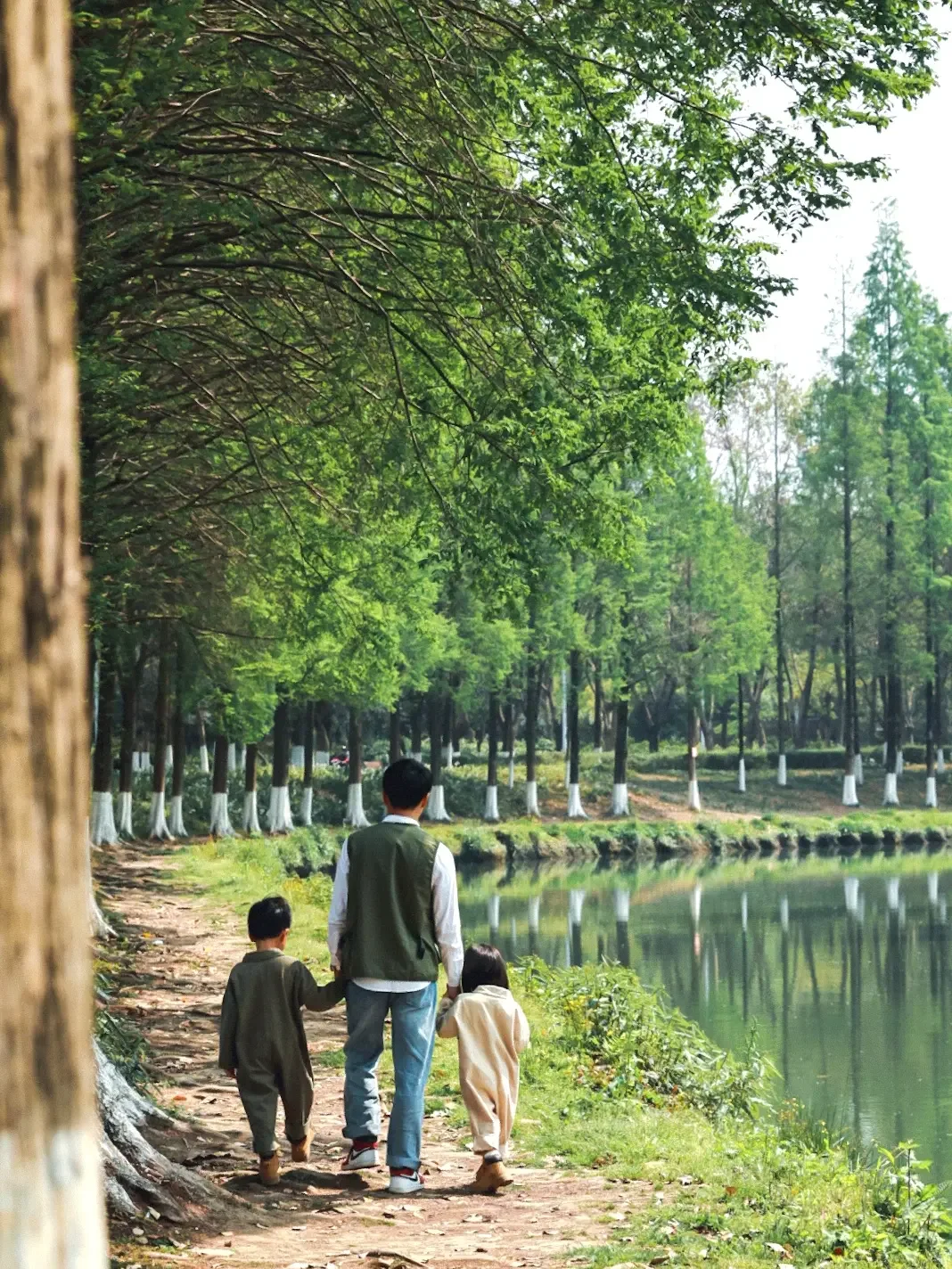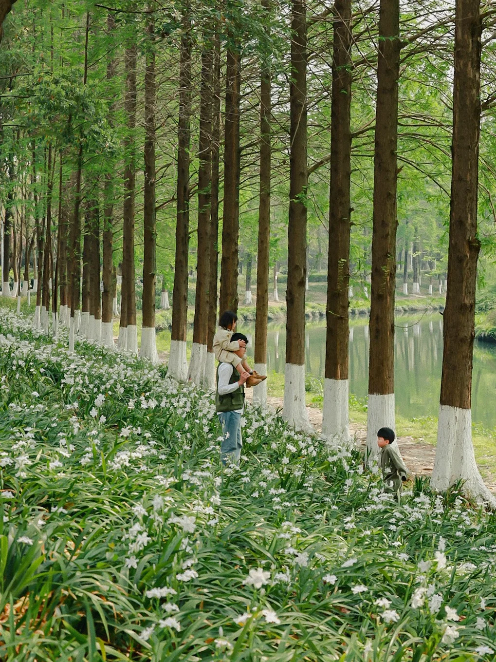 ✔️相对于公园来说,我更喜欢在马路边旁河道边的这一排水杉树林,春夏是绿色,秋冬是红色,无论哪个季节来看都特别美丽,旁边的小河流安静的流淌着,阳光穿过树叶洒下来,树下也开满了鸢尾花,真的好像闯进了一处绿野仙踪之地,让人心情十分的放松愉悦