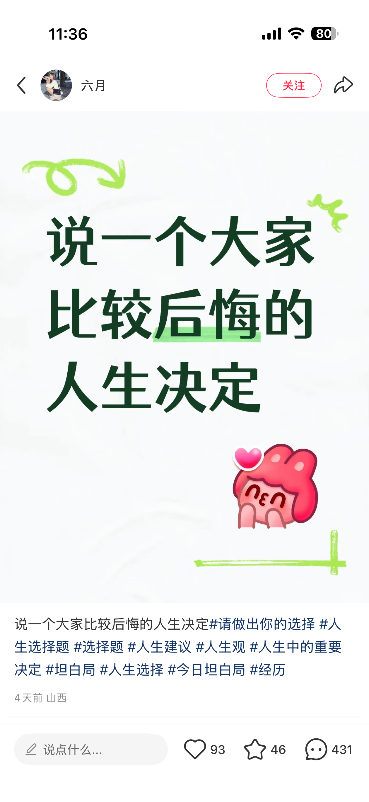 结婚、生娃、买房、读研,无非就这几个简单总结比较后悔的人生决定。但这个只能反应普通人的状态,如果条件一般,人生决定还是要慎重其事~
