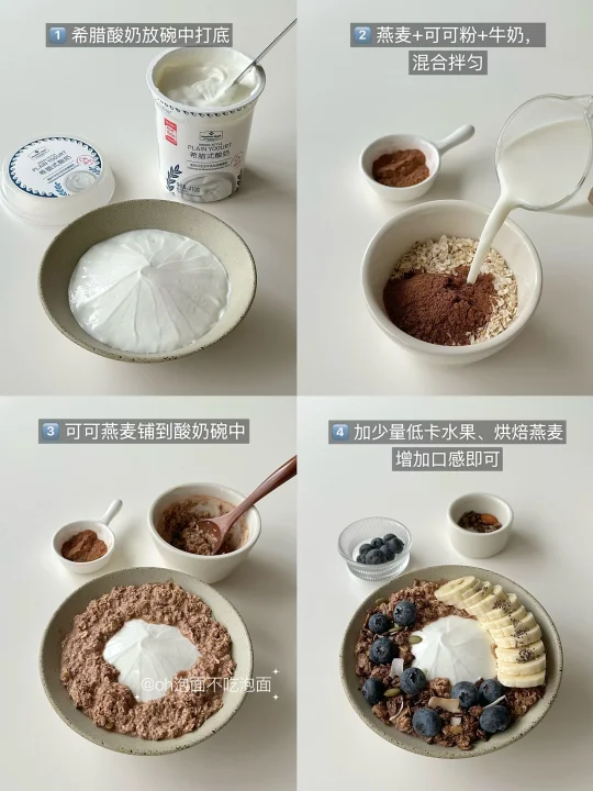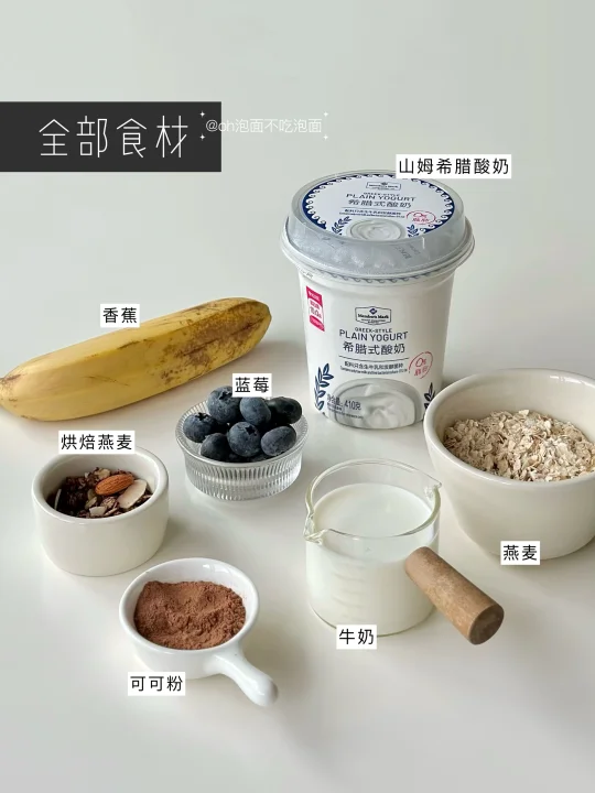 ▪️食材:山姆希腊酸奶,燕麦,可可粉,牛奶,香蕉,少量低卡水果