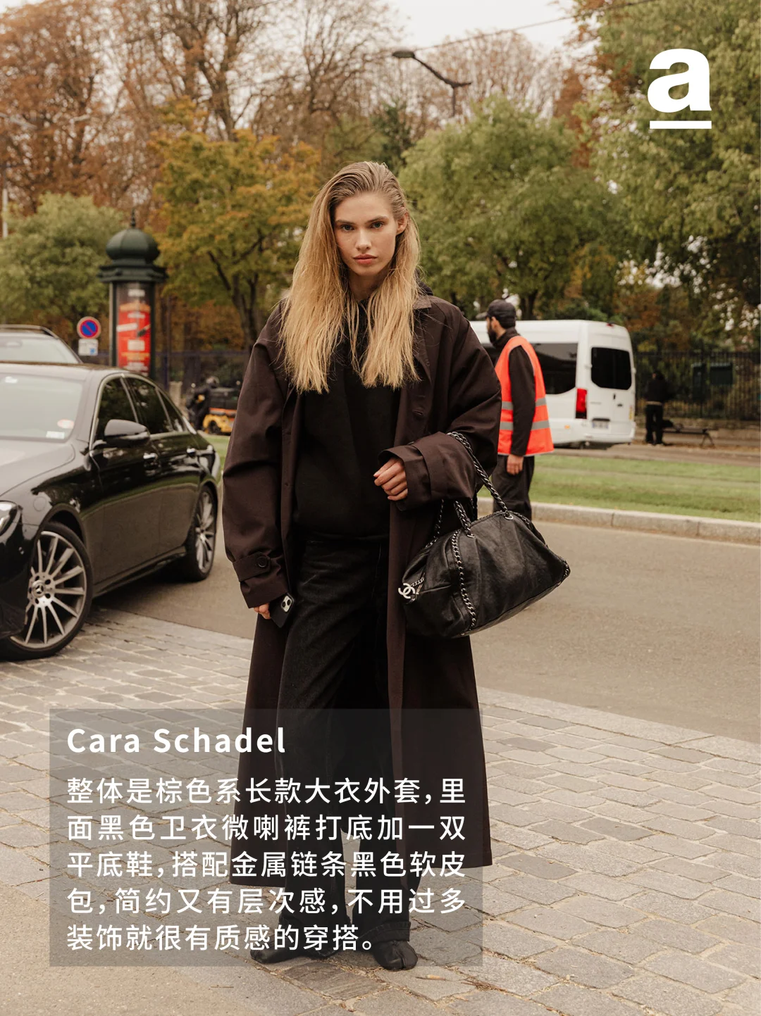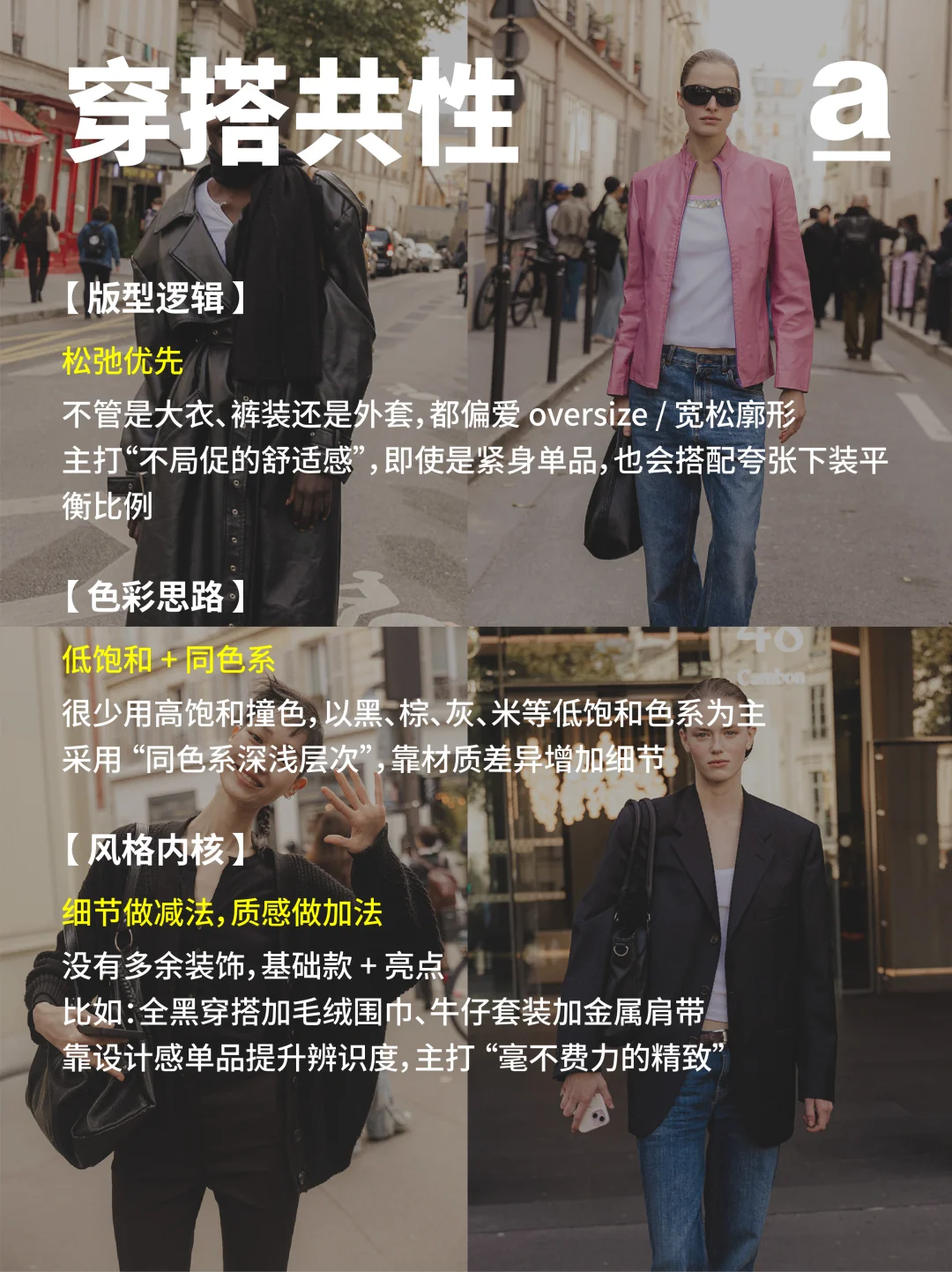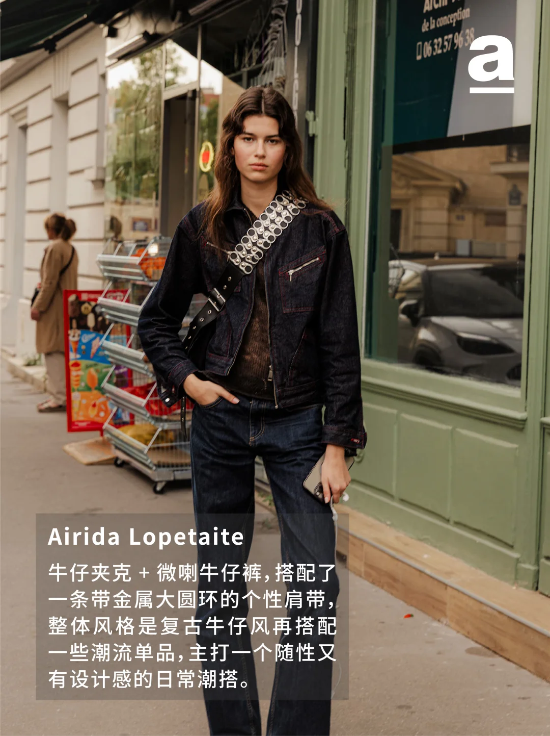 不管是牛仔套装还是大衣,oversize 是标配,但一定会加「记忆点单品」