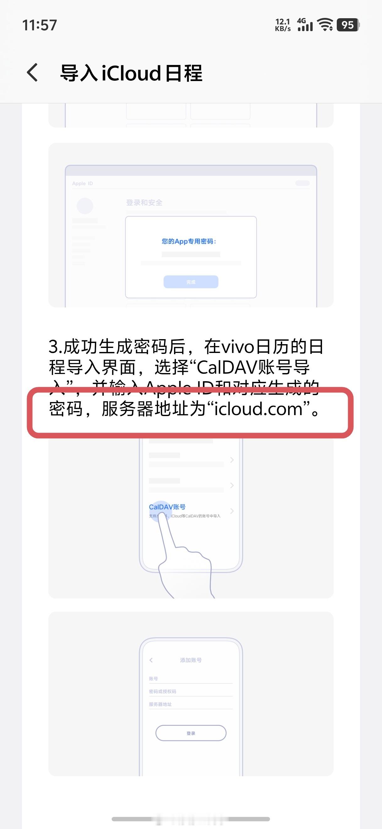 vivo这个问题反馈是真责任客服反馈问题后后来又打了两个电话过来跟进“bug”同步更多信息给工程师直到你问题解决为止背景是这样的:我想把苹果日历的日程同步到vivo日历服务器地址一直填的是“iCloud.com”一直显示“服务器无应答”其实应该填“icloud.com”(小写)如果能不区分大小写就好了