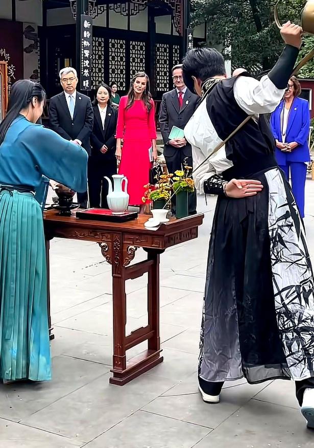 新华社消息显示,西班牙王后莱蒂齐亚今抵成都望江楼公园,端着盖碗茶与市民闲聊,却被同框的一位中方女保镖抢了所有镜头,腰间“真理”套把外套撑成折线,生生把文化走亲戚拍成动作片。 成都望江楼公园的竹林里,清风掠过翠绿枝叶,沙沙声中迎来了一位特殊的客人 —— 西班牙王后莱蒂齐亚。 她身着简约服饰,走进古色古香的茶座,自然地端起一杯盖碗茶,与围坐身旁的市民随意闲谈。 茶汤袅袅升起的热气,模糊了王室与民间的距离,也让这场跨国交流多了几分烟火气。 茶桌旁,川剧面具静静陈列,东方美学的韵味与王后身上的西式优雅相互映衬,构成一幅别致的跨文化图景。 然而,这场本应聚焦文化交融的茶叙,却在镜头传播中发生了焦点转移。 王后身旁的中方女保镖,以健硕的身形和腰间显眼的装备吸引了所有目光。 那外露的 “真理” 套将外套撑出清晰折线,硬朗的视觉冲击与茶馆的温婉氛围形成强烈反差,让原本温情脉脉的文化走亲戚,意外带上了几分动作片的紧张感。 网络上,相关照片迅速刷屏,多数网友忍不住为女保镖的飒爽姿态点赞,也有不少人留意到媒介镜头的偏向 —— 本该聚焦茶韵与交流的画面,却屡屡对准腰间装备,连盖碗茶的细节都未曾清晰呈现。 国内外舆论场上,有人调侃这场外交场景仿佛 “特工 cos 秀”,热度一度盖过了交流本身。 其实,这位女保镖的装备亮相并非刻意为之。 了解外事安保规则的人都清楚,外露枪套是这类公开活动的标准配置,92 式装备的敞亮呈现,本质上是对宾安全的极致保障,更是一种 “有备而来” 的外交礼节。 在公共场所的跨国交流中,安全没有二次试错的机会,这样的配置既是专业的体现,也是对来访贵宾的尊重。 只是在温情交流的场景里,硬朗的装备难免显得有些突兀,如何在居安思危的专业守护与营造亲和氛围之间找到平衡,确实值得思考。 镜头之外的莱蒂齐亚,有着不为人知的多元底色。 在嫁入西班牙王室之前,她是国家电视台的知名记者,曾深入阿富汗战场一线采访,也亲历过重大灾难现场的报道。 多年的职业经历让她身上自带一股不服输的韧劲,即便身处茶馆这样的休闲场景,那份职业女性的敏锐与气场依然清晰可辨。 她端起盖碗茶的姿态,不经意间流露出类似在演播室拿起话筒的专注,透过氤氲的茶香,她用洞察世事的目光观察着成都茶馆里的人生百态。 作为两个女儿的母亲,她的家庭生活同样引人关注,丈夫是西班牙国王,大女儿莱昂诺尔是法定王位继承人,小女儿则追寻着艺术梦想,一家四口的人生选择,恰好展现了现代女性的多种可能。 值得一提的是,莱昂诺尔作为未来的西班牙女王,正经历着与众不同的成长之路。 刚成年的她便被送往威尔士留学,军事训练、议会演讲等课程样样不落,她也将成为西班牙历史上首位接受正规军事训练的女王继承人。 这一安排不仅体现了莱蒂齐亚对子女的培养理念,更折射出欧洲王室正在发生的悄然变革 —— 传统王室继承模式正在被更具现代性的培养方式取代。 望江楼公园的竹林依旧婆娑,盖碗茶的香气萦绕不散。 这场意外聚焦于 “硬装备” 的跨文化交流,终究还是回归到了东方与西方的温柔对话。 中方女保镖的硬朗与莱蒂齐亚的优雅,看似反差强烈,实则共同展现了现代女性力量的多元面孔 —— 既能以专业能力守护安全,也能以温柔姿态传递善意; 既能在职业领域独当一面,也能在家庭与责任中找到平衡。 茶馆作为观察社会的窗口,今日这场特殊的茶叙,让来自马德里的王室成员感受到了成都的包容与开放,也让东方智慧通过一杯清茶,跨越洲际传递出去。 今天的分享到这里就结束了,大家对此事有何看法,欢迎在评论区留言和讨论,感兴趣的可以点击头像加关注,我将每日更新优质内容,我们下期见。