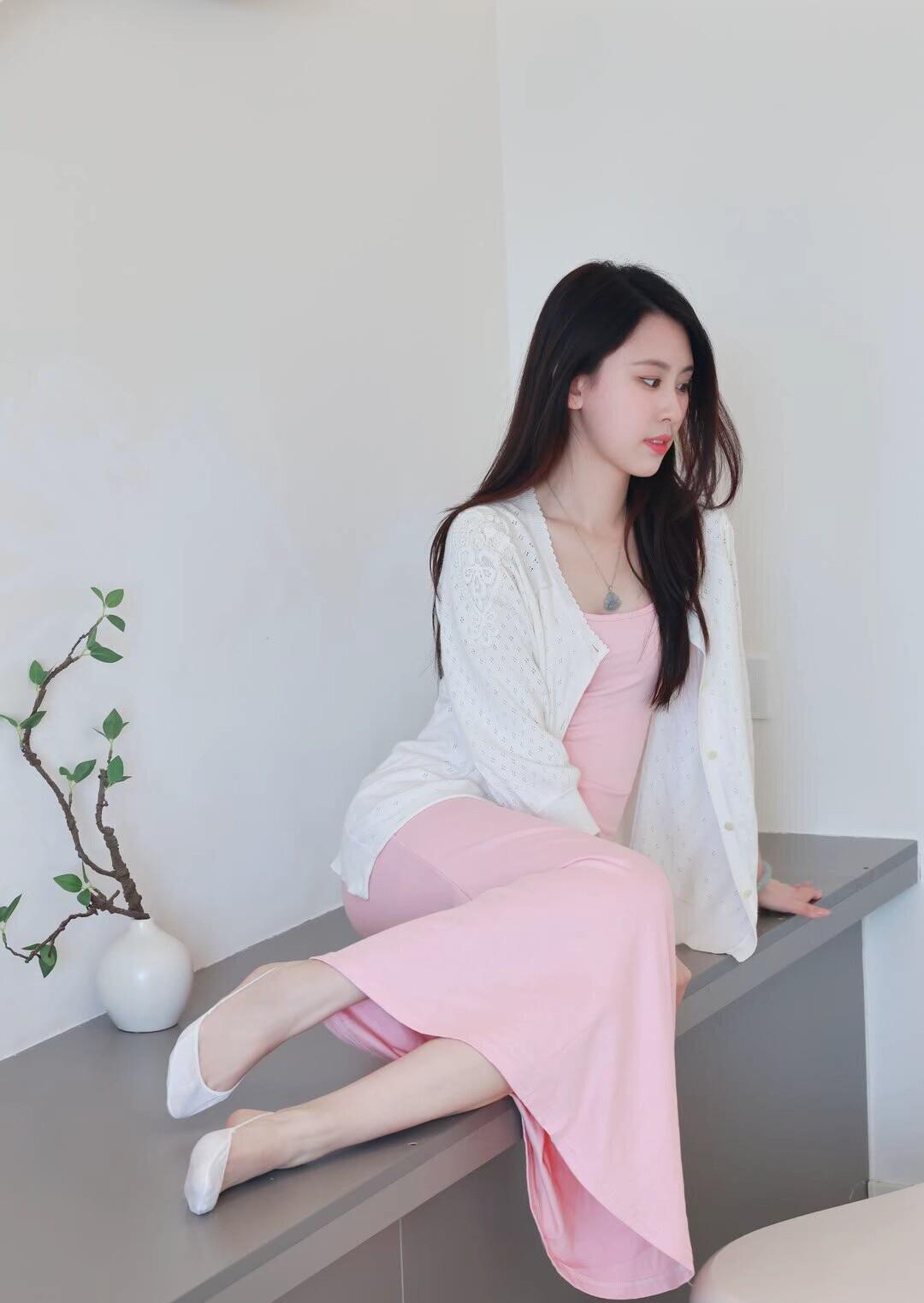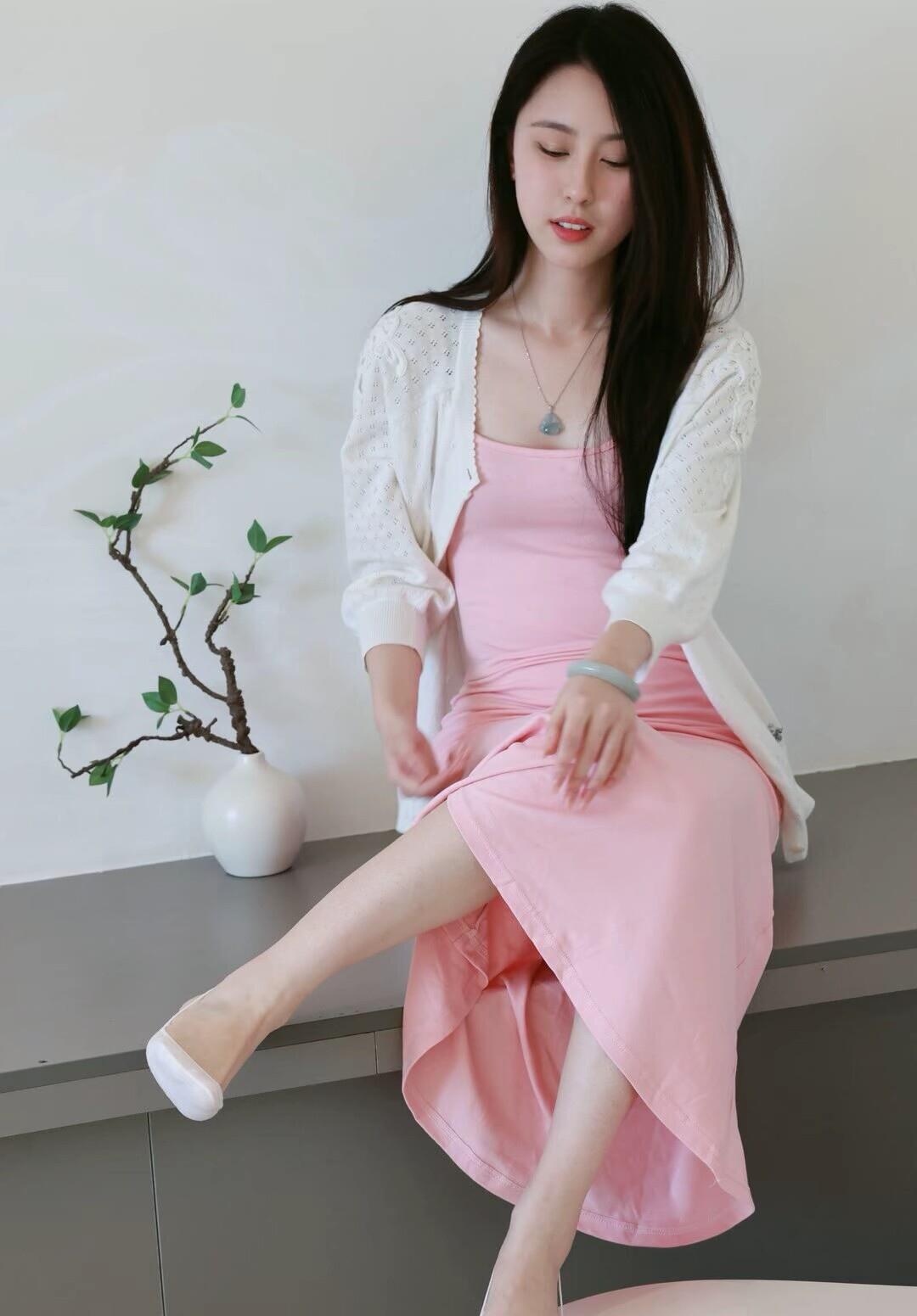 温柔粉裙与白色针织衫的完美搭配,轻松自在,尽显优雅气质。🌸👗💍