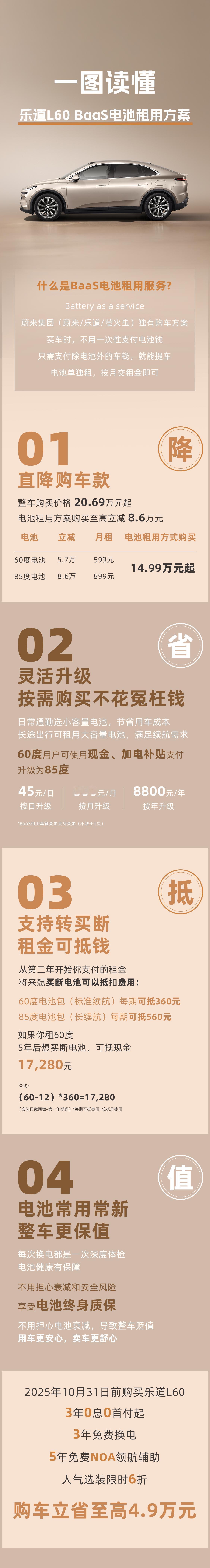 “中国新能源车做得好,那些洋破烂卖不动”—罗永浩前两天直播说的,平时对直播其实没兴趣,这句倒是引起了我的注意,现在国产品牌越来越好,已经进入到2.0阶段了,合资品牌除了少数创新者,大多数还在四处出击未来之路,尚未找到有效道路。下一阶段的激烈赛道就是20–30 万级纯电 SUV,这里已经进入了淘汰赛,Model Y也将迎来中国的真正挑战者。 如果以月销 5000 辆为门槛来看,目前能稳定在这个区间的主流车型,其实也就四款:Model Y、小米 YU7、理想 i6,以及乐道 L60。是的,尽管被 L90 的光芒笼罩,但实际上 L60 的销量一直还不错,属于闷声发财卖车的状态。 这四款车有一个共同点——很稳。Model Y 已经是“惯性卖得好”的代表;YU7 从上市开始,热度就没下去;理想 i6 交付势头也挺强,看趋势大概率月交付能过 5000。至于乐道 L60,它可能是这四款里低调但有实力的一位。 这台车去年发布后,到现在短短一年的时间,品牌交付量突破了10w台。且一路走高、趋势向好。 为什么它能稳?因为它不是爆款逻辑,而是长期逻辑。一台长期逻辑的车,在这个时代显得极为稀缺,弥足珍贵,因为它需要强大的产品力支撑,还得让实际开过的用户满意,甚至愿意推荐给身边的朋友。并不需要靠话题制造热度,而是靠产品力闷声发大财。 而它“能换电”,也是这个品牌长期主义下的“杀手锏”,谈到三分钟换电,很多人第一印象是“快”,实则它的背后逻辑更值得深析,这相当于以更低的价格入手一台完全不需要担心“电池衰减”的车,价格低+能换电的双向加持,也就合理保证了它的保值率甚至能超越model y,在中国汽车流通协会认证的榜单中,它的一年保值率同级第一。 不仅如此,它也凭借“全 G”成绩获得了中保研史上安全评级第一,这也就打消了“价格低会不会影响质量”的疑问,所以从品牌实力的角度去讲,这也是给予用户信心的体现。 对于显性的产品力,其实换句话说就是用户收益,最显性的就是空间、能耗,而L60都非常具有优势,首先有超大空间,甚至二排空间可轻松实现“溜达自由”;能耗方面,后驱版本百公里能耗低至 11.9 kWh、四驱低至 12.4 kWh,与 Model Y 并列同级第一。现在通过再进化,L60 的能耗、智能与舒适性更全面,也让它的竞争力更加平衡。 如今乐道品牌累计交付量也突破了 10 万台,势能正在形成正循环。 现在的20–30 万级纯电 SUV 市场,已经形成了四小龙的格局:Model Y、YU7、理想 i6、乐道 L60。它们都强、都稳,也都有自己的独门利器。谁都干不掉谁,但每一款都在推动这个市场往前走。【来自懂车帝车友圈】