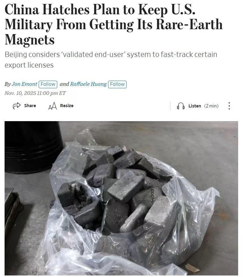 美国又被卡脖子了?中国开始恢复稀土供应,但必须答应一个条件 天下没有免费的午餐,同样也没有轻易可以获得的稀土。 中美在10月30日会晤之后曾达成一致,中国把10月9日宣布的稀土出口管制措施暂缓一年,恢复对美国稀土供应。 不过如果美国现在就开始开香槟的话就太早了,我们卡住美国的脖子不会那么容易松开,美国想要稀土可以,但得先答应我们一个条件。 11月11日,据知情人士透露,中国正打算设立一套出口管控机制、“经认证终端用户”简称VEU。 这套机制可以帮助普通民营公司更便捷的获得出口许可,但假如那些企业和军事有牵连的话,就别想拿到许可了。 也就是说,今后只有经过“经认证终端用户”认证的企业才能获得我们的稀土供应,不然还是得继续被卡脖子,那老美的军工产业自然还得受限。 稀土这张牌实在太好用了,我们不可能因为特朗普虚空造的几张关税牌就轻易妥协,放弃使用我们这张王牌。 更何况,现在我们建立所谓的VEU机制,这也是有样学样,美国要怪的话,只能怪他们的回旋镖最终打在了自己身上。 因为VEU机制本身就是美国在2007年率先创造出来的,而且还多次用这一招打压中国的产业企业。 比如2022年11月,美国就曾对半导体出口进行管制,然后只授予了三星、SK海力士、台积电等在华工厂1年VEU豁免期。 还有今年6月份,中美正在谈判期间,美国突然要求对华出口的乙烷也要实施 VEU许可制度,直接导致多艘乙烷运输船只能被迫停留在墨西哥湾沿岸,造成极大损失。 既然美国可以用这一招,那我们当然也可以。现在的美国着急上火,无头苍蝇似的在全球到处找矿。 11月7日,巴西的一家稀土公司塞拉韦尔德集团声称,美国国际开发金融公司对其提供4.65亿美元的资金,以帮助他们完成巴西中部的稀土生产设备升级。 巴西也是全球矿产大国,稀土储量也就排在我国之后,在巴西之前,美国已经先后和澳大利亚、马来西亚和日本分别达成了关键矿产协议。 还有11月12日,美国稀土公司宣布,英国的监管机构已经批准了美国对英国稀土生产商的收购,预计在第4季度之前就能结束收购。 美国这么努力,有用却不多。全世界70%的稀土开采量和90%的精炼产能都握在我们手上,其中许多关键技术更是拥有很强的控制力,在提炼、分离以及精炼等环节上的工艺,我们经过多年的积累。 不是哪个国家喊几句口号,多砸一点钱就能短期实现追赶逆袭的。 而且说句比较现实的话,也不是我们要看低美国,但特朗普从2018年就开始打对华贸易战,一直想让制造业回流美国,结果折腾这么多年美国制造业也没啥起色。 凭现在美国的工业链水平,拿什么和中国竞争呢?一个客观的事实就是,在美国制造业整体拉胯的情况下,想要让稀土产业异军突起几乎不可能。 稀土产业不是孤立的资源开采,而是有许多的尖端产业高度集合而成,这里面包含精密化工、材料科学、装备制造和环保工程等等。 既需要有特别高端的顶尖人才,也需要有大量的技术工种,产业空心化的美国几乎丧失这些人才的培养环境了。 美国是近几年才意识到自己在稀土产业上被卡脖子了吗?不是的,早从奥巴马时期,美国就已经认识到这个问题。 当年的奥巴马就已经在高呼要摆脱稀土产业上对华依赖了,2010年10月份,美西方就已经有过这样的声音:中国将来可能会用稀土做武器。 当时美国多家商会联合起来要求奥巴马政府对华施压,想要强迫中国放开稀土出口限制,不要干涉稀土的商业销售。 奥巴马政府还在当年推出了《关键矿产复兴法案》,花费重金重启已经关闭了的加州芒廷帕斯稀土矿。 2012年更是要来硬的,和日本、欧盟等联手要在WTO起诉我们,逼着我们贱卖稀土,然后折腾了十几年,到现在情况也没有什么改变。 美国人可能不愿意相信,现在的他们国内存在的问题实在太多了,就算再给美国10年时间,眼下的问题也不会有太大改善。 别的不说,光是美国两党斗争就足以让美国在多项产业发展上停滞不前,换一届政府,许多政策就要推翻重来。 偏偏稀土产业又是一个需要长期砸钱补贴,非常花费时间、资金,需要一直坚持下去的产业,反反复复的拉扯注定了美国在许多方面的发展都要做很多无用功。 而且美国作为一个高度资本化的社会,一切向资本看齐,稀土产业投入大,然而想要见到回报却非常漫长,如果中国再和他们打打价格战,那直接崩盘。 华尔街的资本们不是傻子,不想把钱投在这种连响都听不见的产业上,还是搞金融有前途! 再加上美国当前财政吃紧,债务压力巨大,这些年搞的快乐教育把美国大批普通人教成了个傻子文盲,美国文盲率高达21%,你敢相信这是一个发达国家的数据? 今年9月份美国政府自己公布的数据,高中生阅读能力达到熟练的只有35%,数学只有22%的人达标,总不能指望这些“人才”来搞稀土产业。