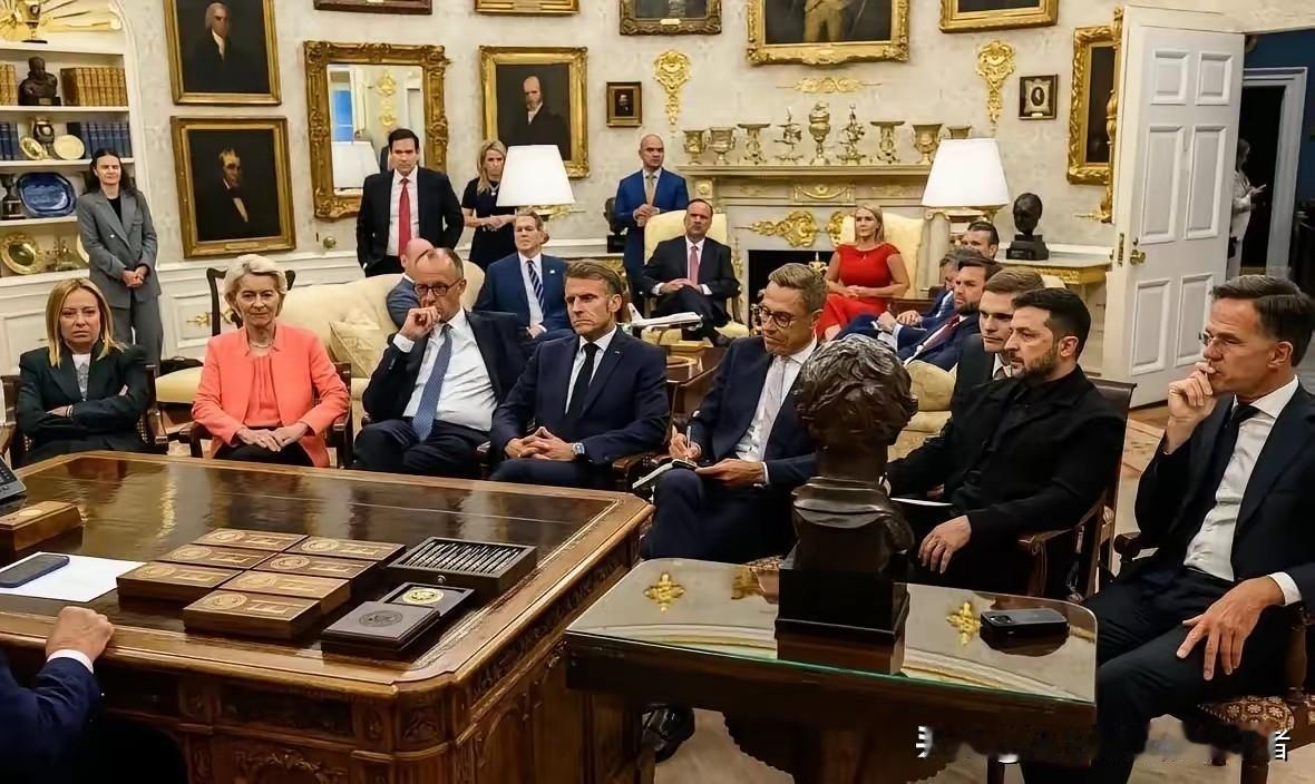 2025年有个名场面 ——欧洲那帮大佬凑一起, 就像在围观特朗普“训话”。冯德莱恩脸上挂着僵硬的笑,头几乎快低到胸口,眼睛老往地上瞟,不敢看特朗普;默克尔紧张得手指无意识地抠着衣角,一只手托着腮帮子,时不时偷偷抬眼看一下,又赶紧低下头;梅洛尼双臂抱在胸前,嘴角抿成一条直线,全程没吭声,脸冷得像块冰;马克龙脸上努力维持着平静,但眉头悄悄皱了一下,像在心里默念“我先忍忍”……这哪像是正经的国际会议啊,倒像是班主任在训话的场面。 西方这出“名场面”,看得人又想笑又觉得有点无奈。特朗普翘着二郎腿在那儿说这说那,手一挥一挥的,活脱脱像在给一群小学生开班会。最有意思的是冯德莱恩,假笑的嘴角都快挂不住了,全程不敢抬头;默克尔那偷瞄的样子,简直和上课走神被老师抓包的学生一模一样。 有人说这是西方民主闹的笑话,要我说啊,这就是场大型“政客真人秀”——台面上装着和气,背地里各有各的心思,咱们这些看客看得津津有味。不过最逗的还是网友评论:“下次不如直接发小红花得了。” 大伙儿觉得,这种外交场合,到底是该端着严肃点,还是轻松点更合适呢? -search.byteimg.com/img/labis/eb6821c2edd5a20c9b6501fd1127458d~480x480.JPEG