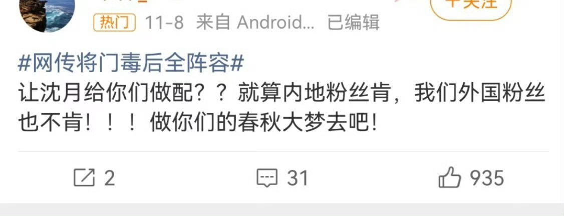 沈月是什么咖位很大的人吗?还不能做女配她粉丝让我们做春秋大梦。。