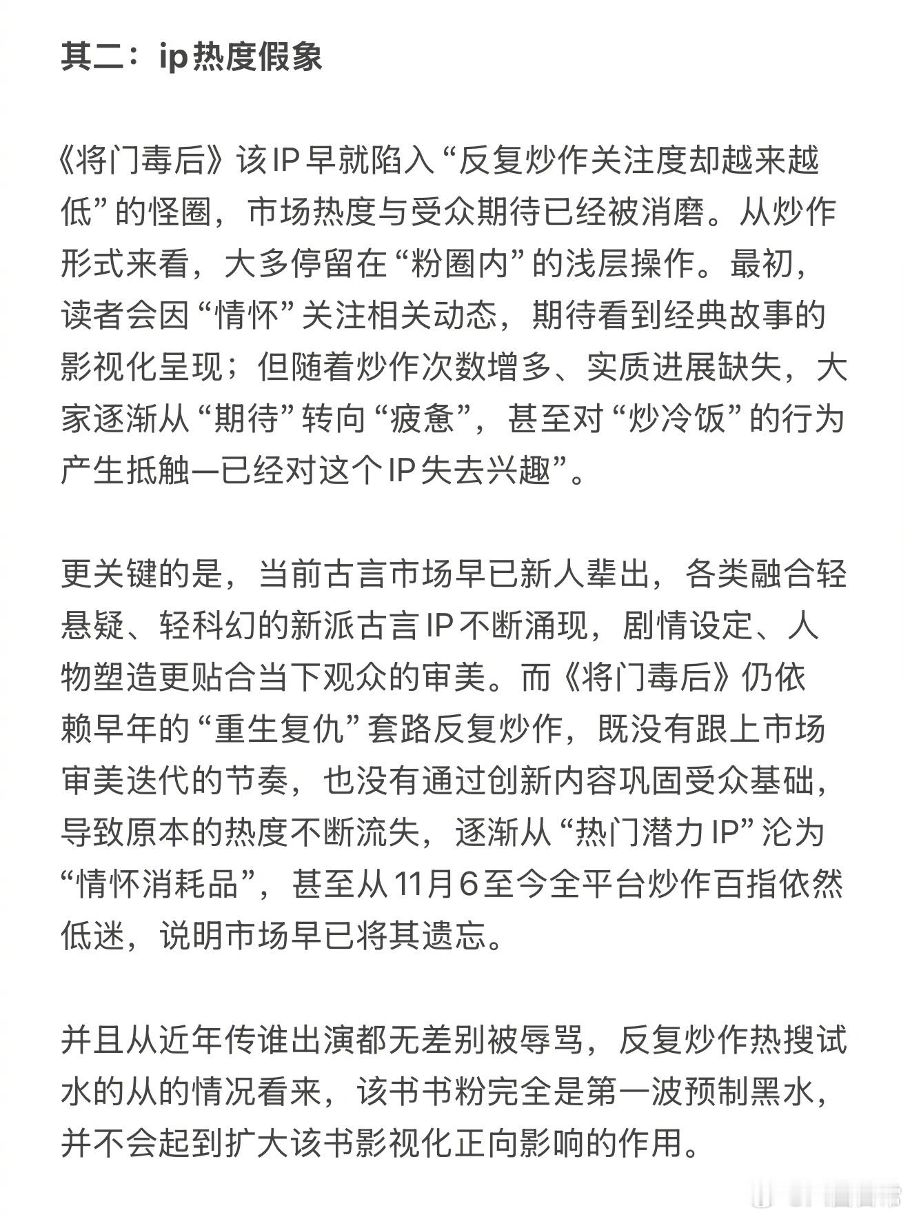 王鹤棣粉丝写的《将门独后》不适合立项开拍的理由,并表示这篇文会以邮件的形式发给将