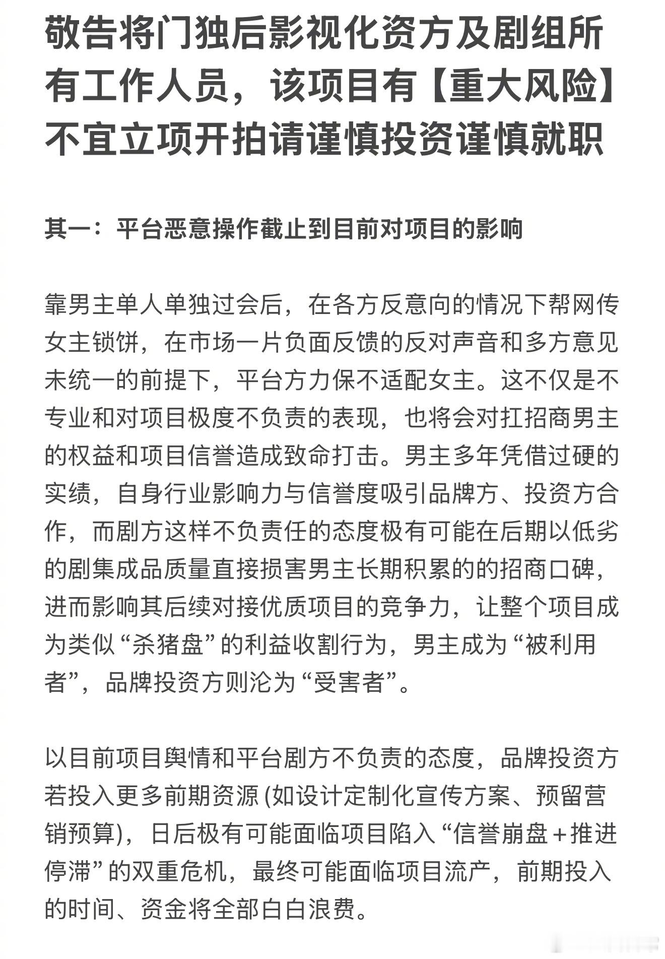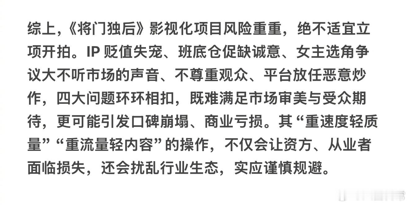 王鹤棣粉丝写的《将门独后》不适合立项开拍的理由,并表示这篇文会以邮件的形式发给将门影视化所有可能的资方和项目立项审批部门